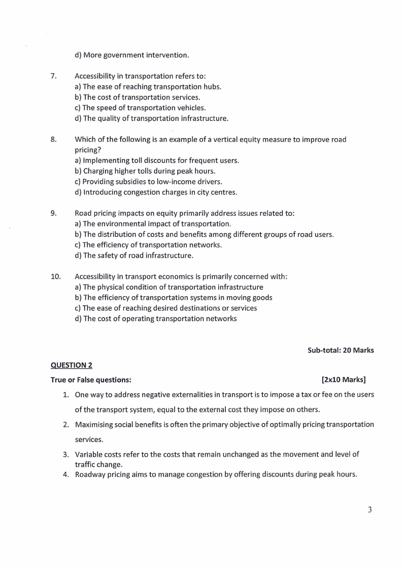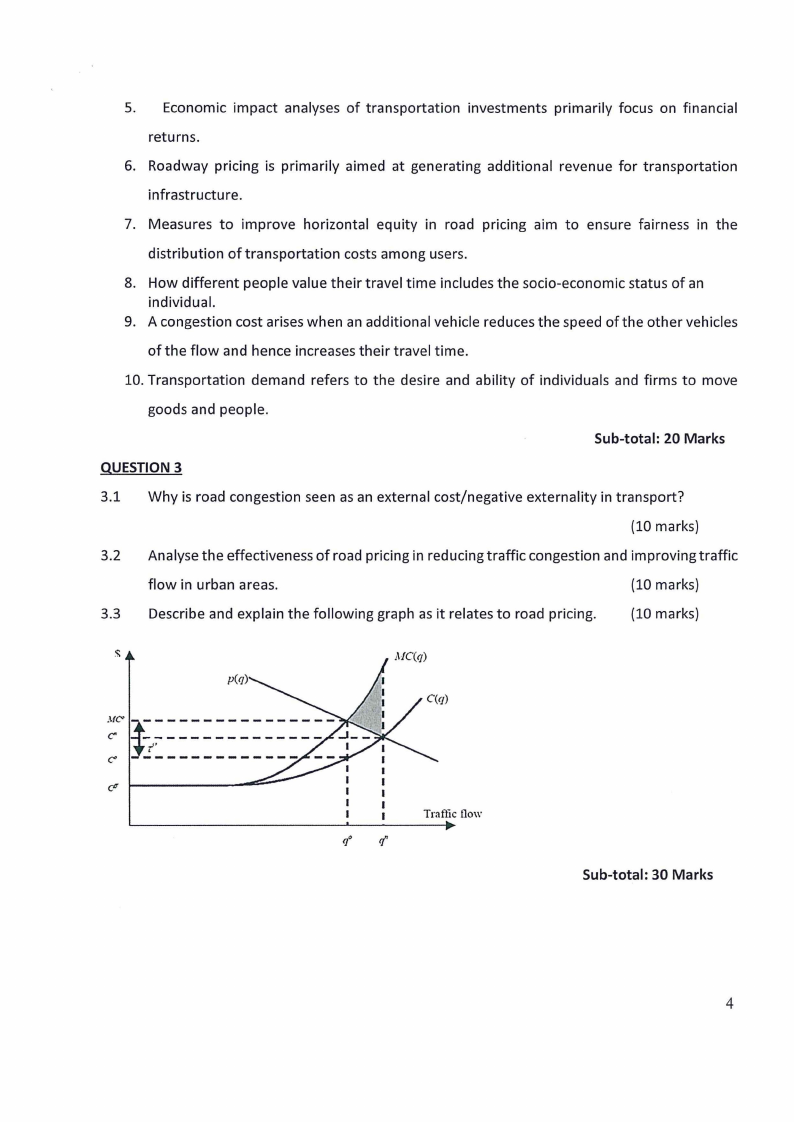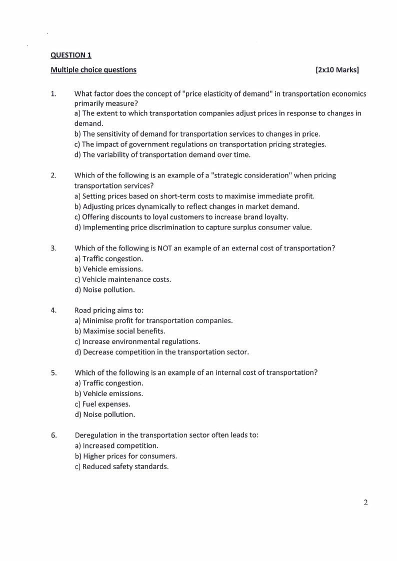 1. One way to address negative externalities in transport is to impose a tax or fee on the users