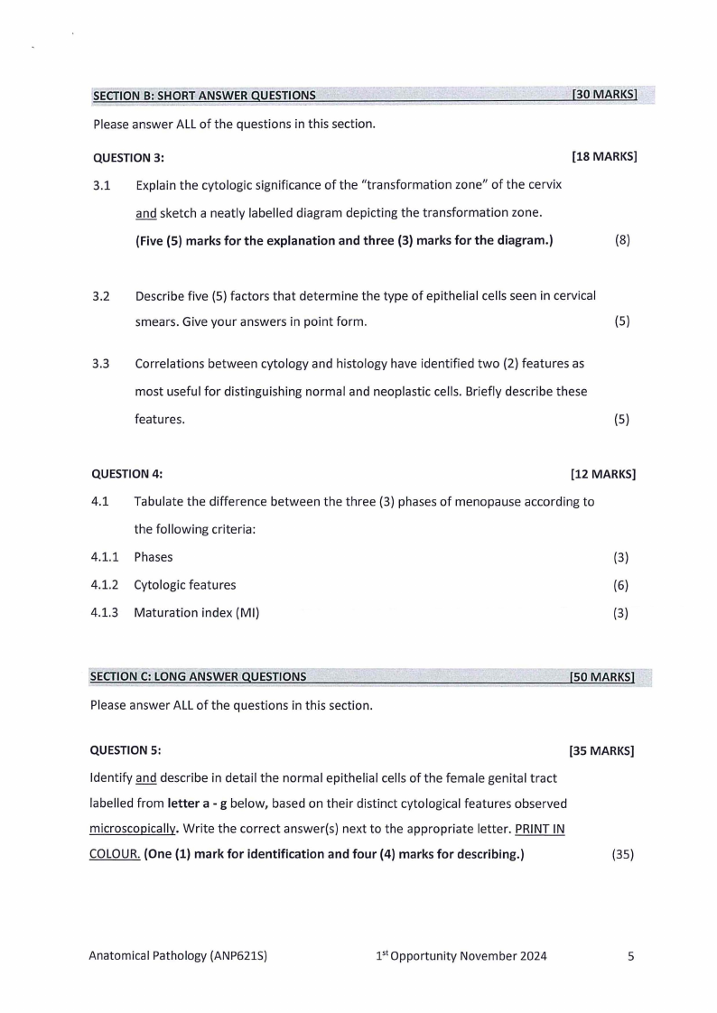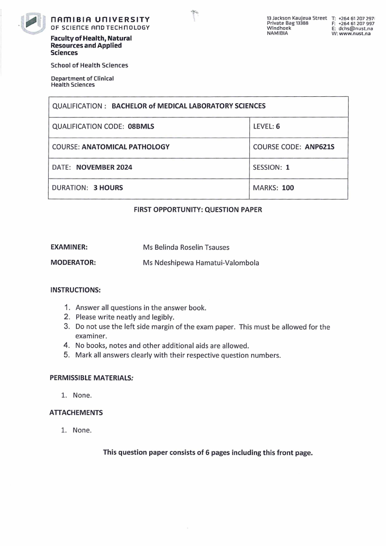 ANP621S - ANATOMICAL PATHOLOGY - 1ST OPP - NOVEMBER 2024 |