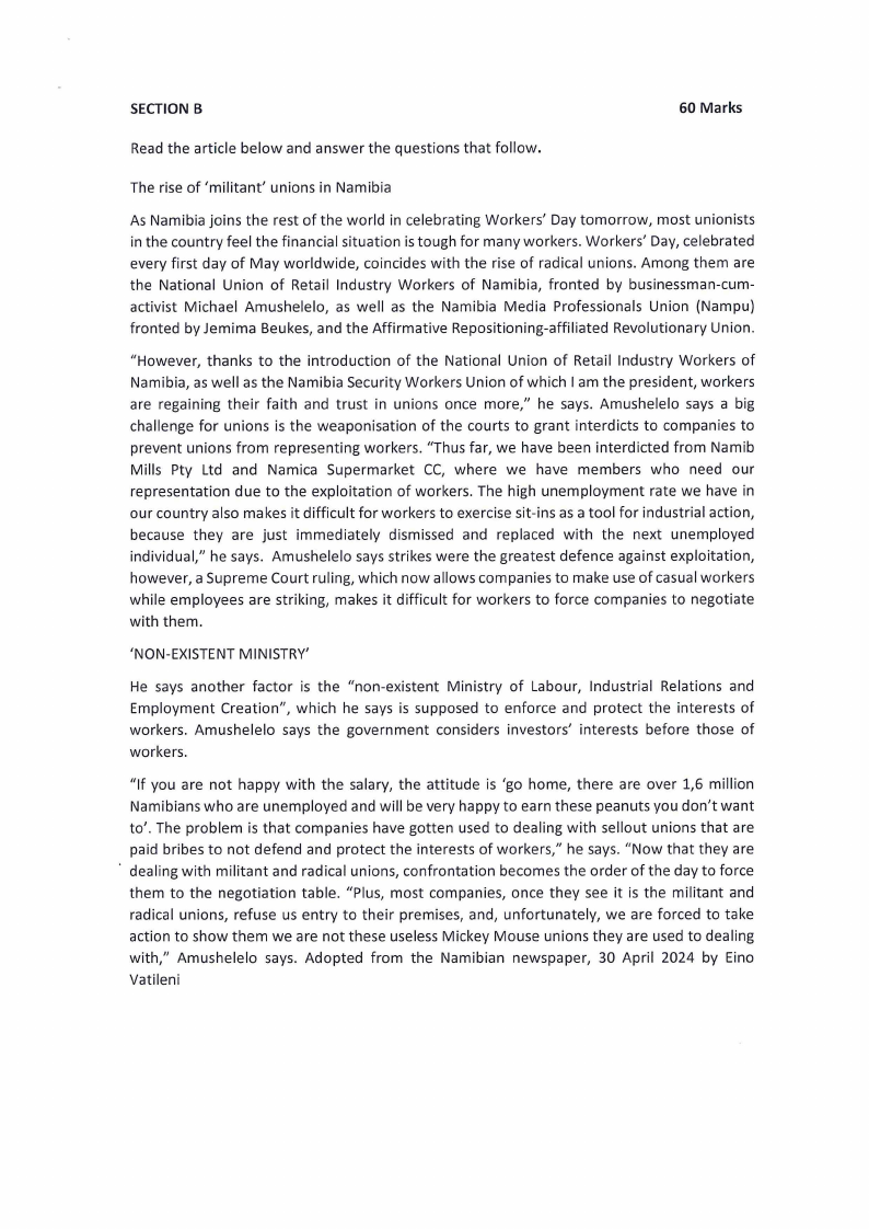 with," Amushelelo says. Adopted from the Namibian newspaper, 30 April 2024 by Eino