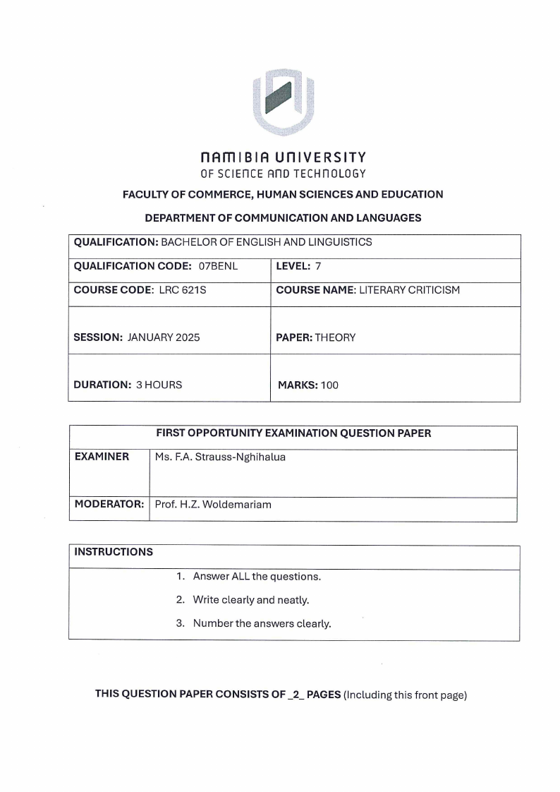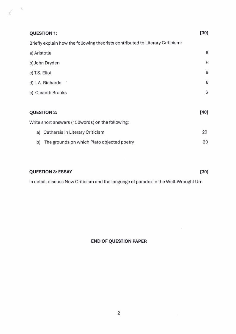 COURSE NAME: LITERARYCRITICISM