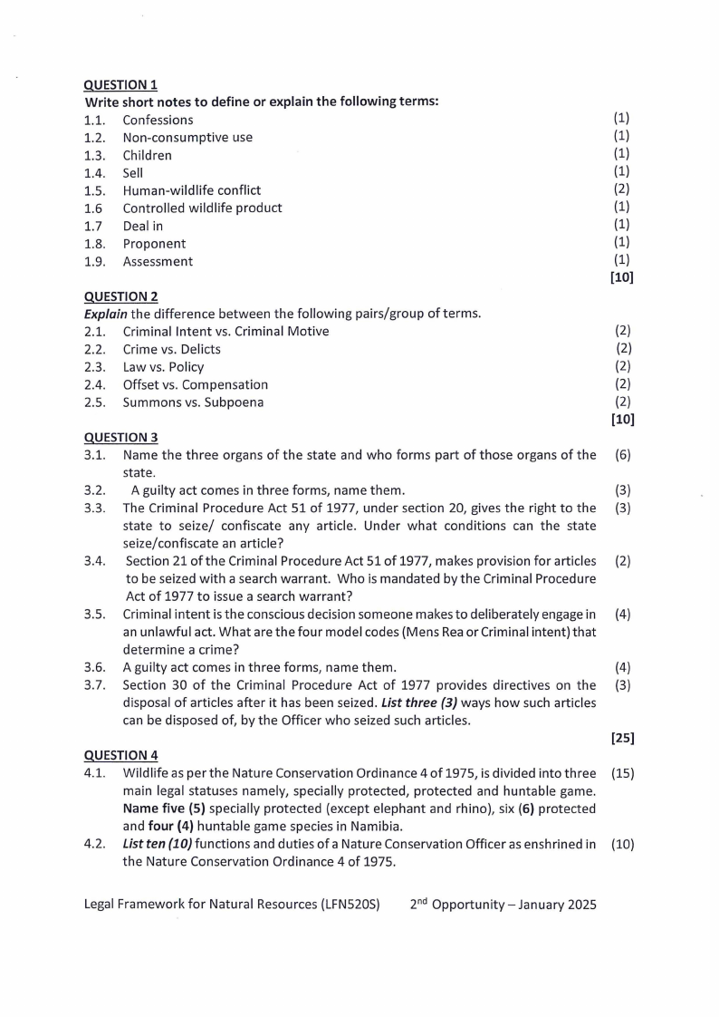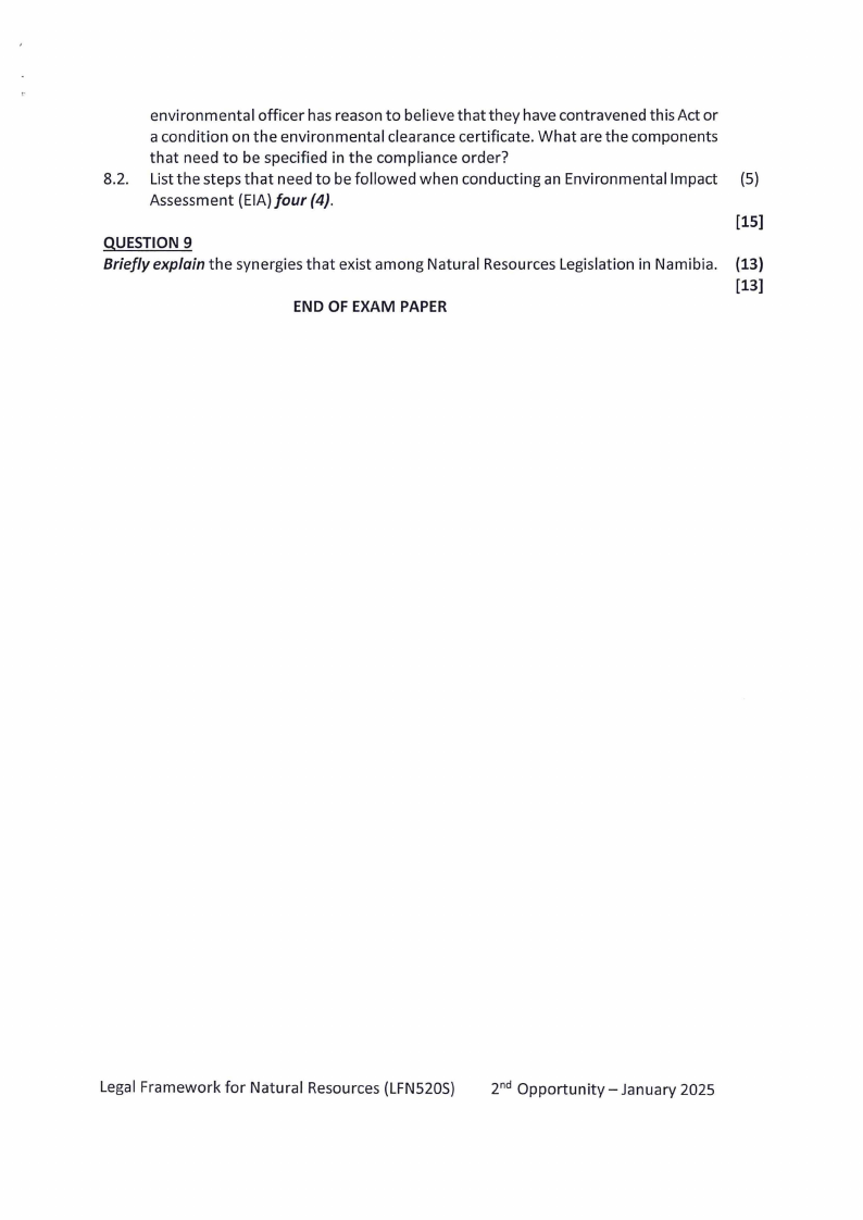 Legal Framework for Natural Resources {LFN520S) 2nd Opportunity-January 2025