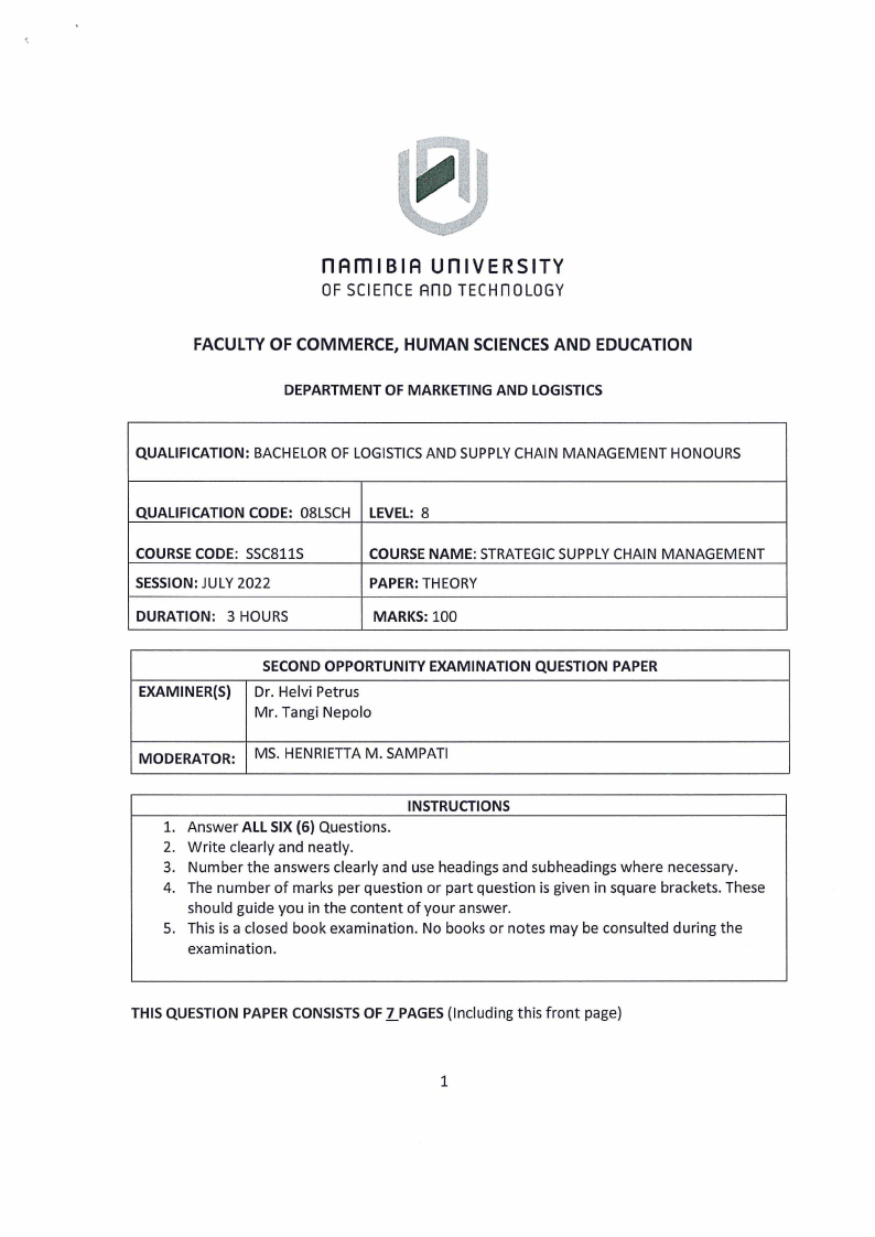 SSC811S - STRATEGIC SUPPLY CHAIN MANAGEMENT - 2ND OPP - JULY 2022 |