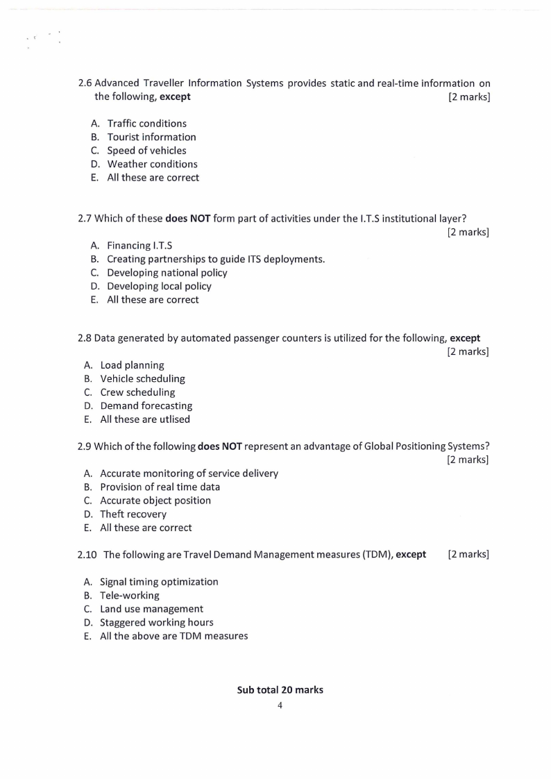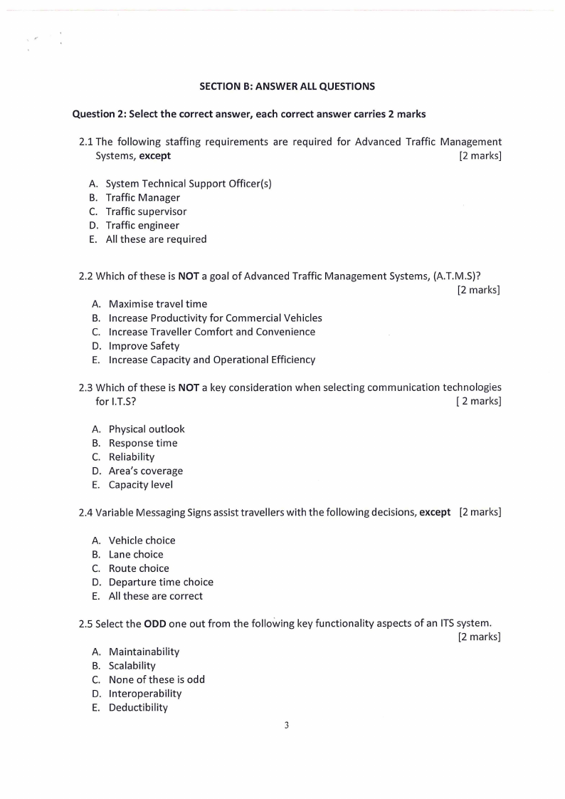 1.8 Intelligent Transport Systems are aimed at improving on safety, minimise on efficiency,