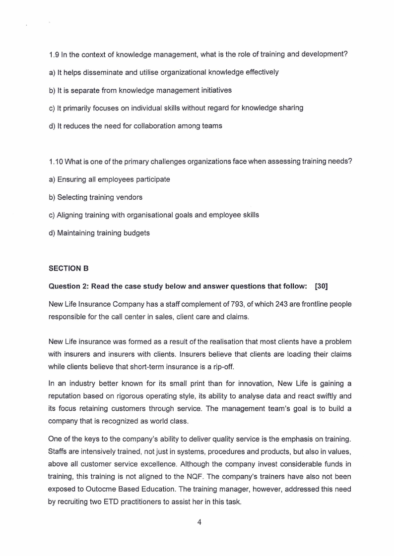 1.9 In the context of knowledge management, what is the role of training and development?