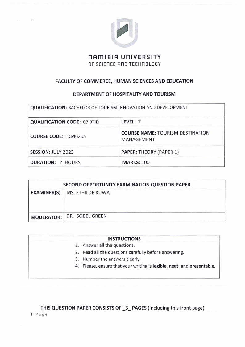 3.1 Define rural destination and provide two (2) examples of rural destinations in Namibia
