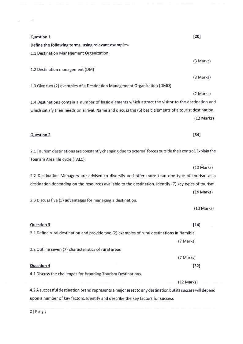 2.1 Tourism destinations are constantly changing due to external forces outside their control. Explain the