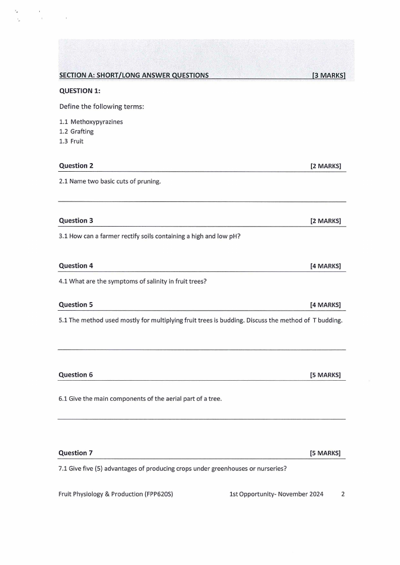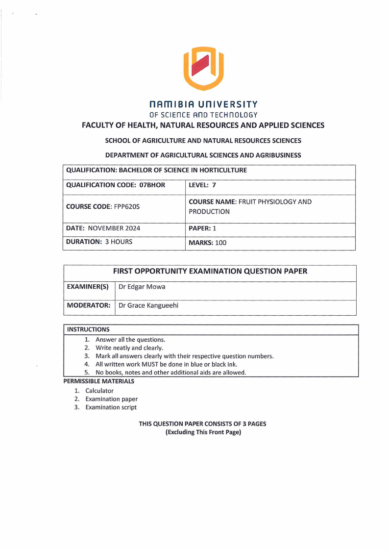 FPP620S - FRUIT PHYSIOLOGY AND PROCUCTION - 1ST OPP - NOV 2024 |