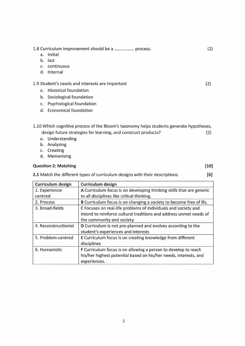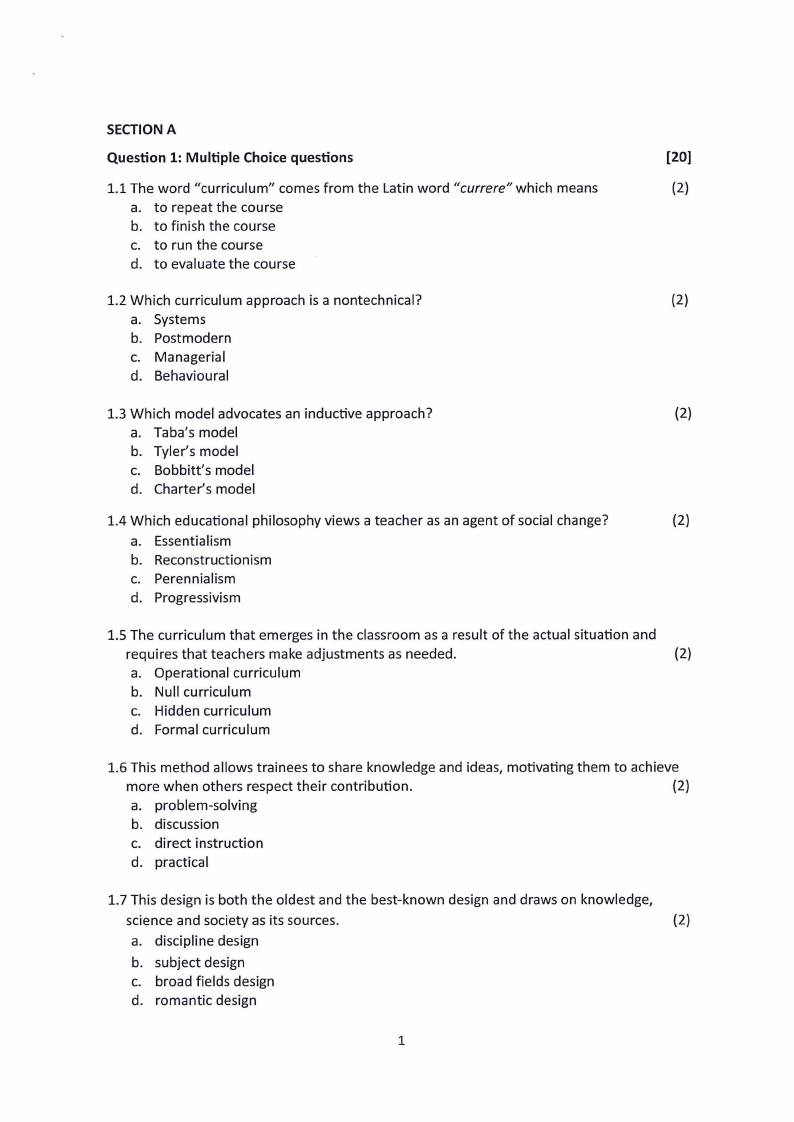 7.1 State the components of curriculum.