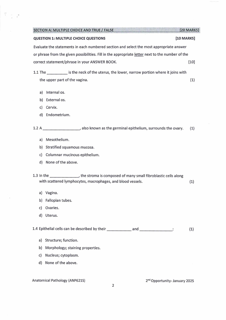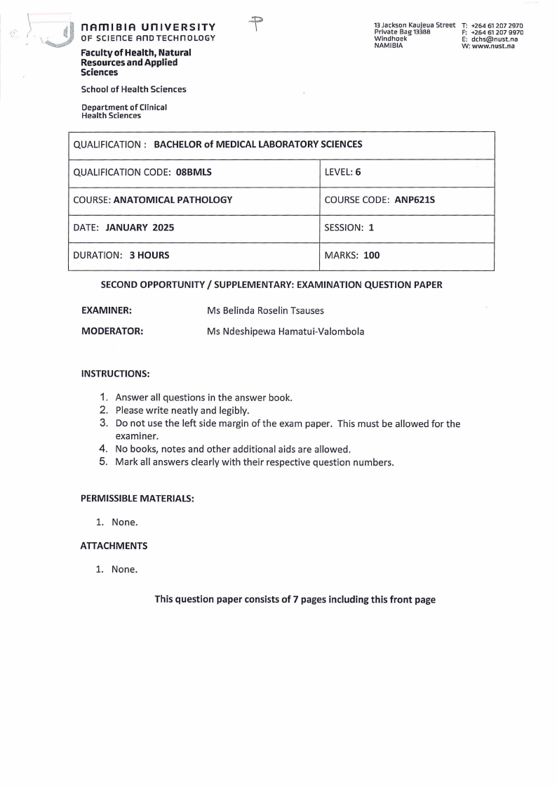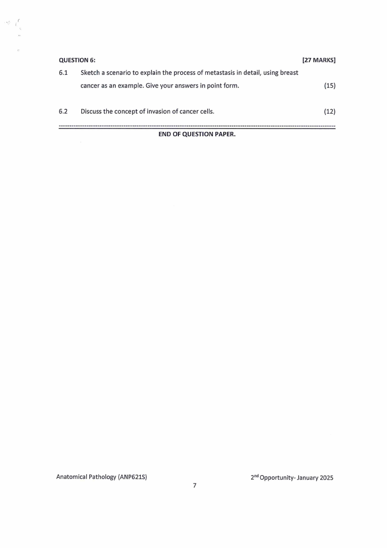 ANP621S - ANATOMICAL PATHOLOGY - 2ND OPP - JANUARY 2025