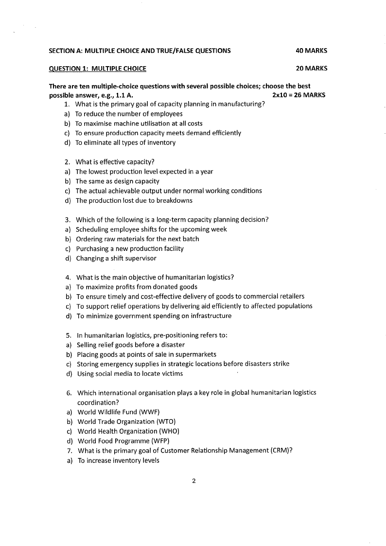 SECTIONA: MULTIPLE CHOICEAND TRUE/FALSE QUESTIONS