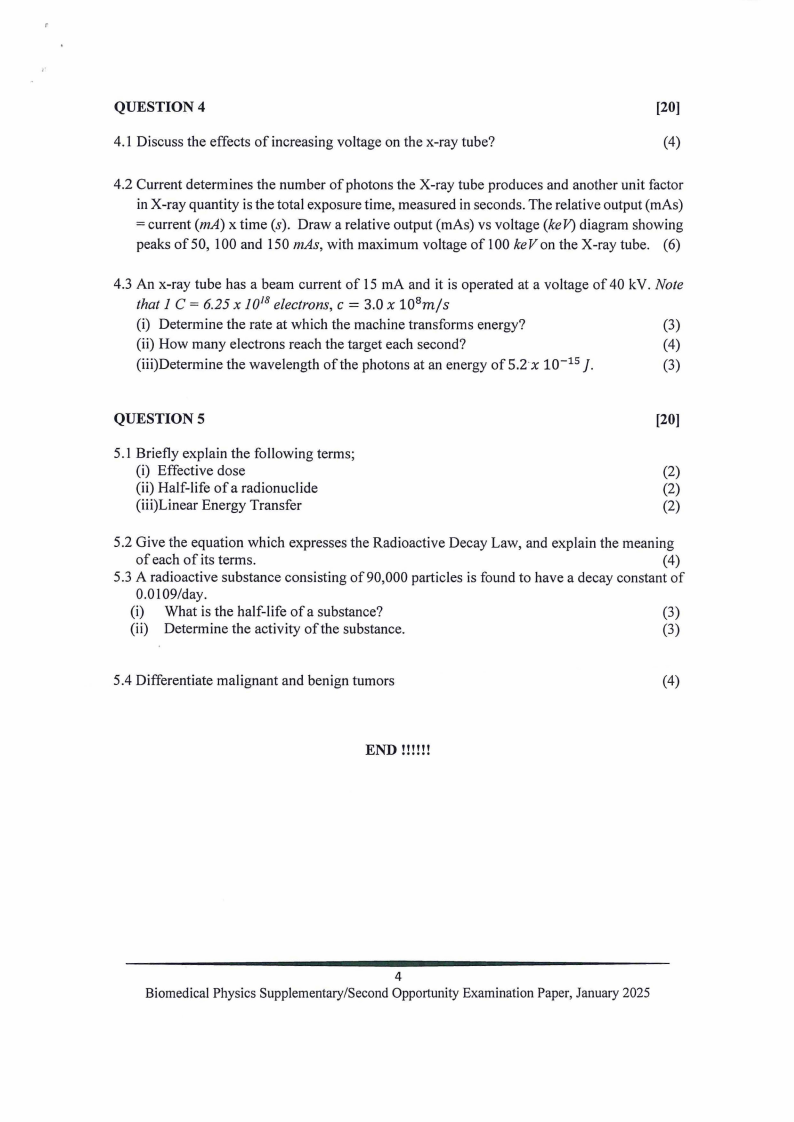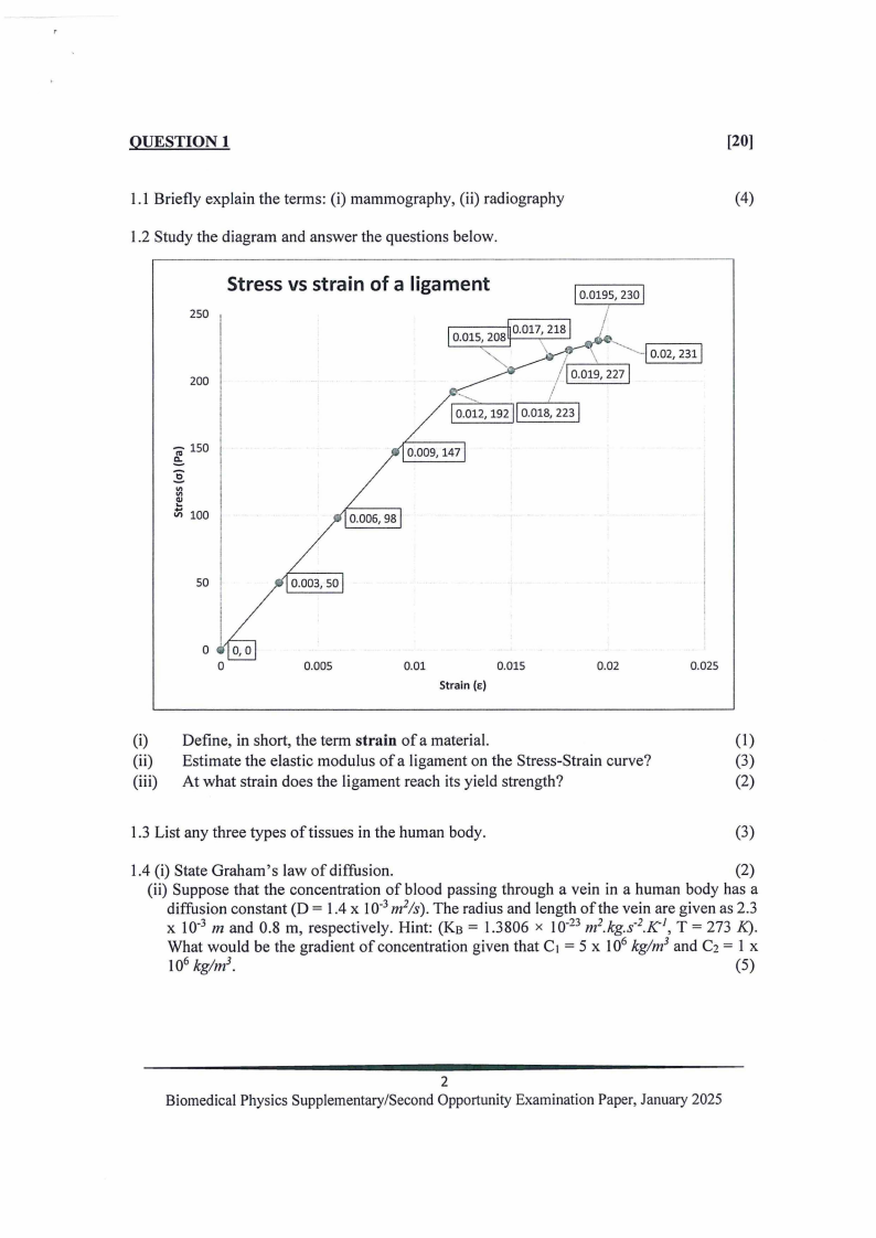 Biomedical Physics Supplementary/Second Opportunity Examination Paper, January 2025