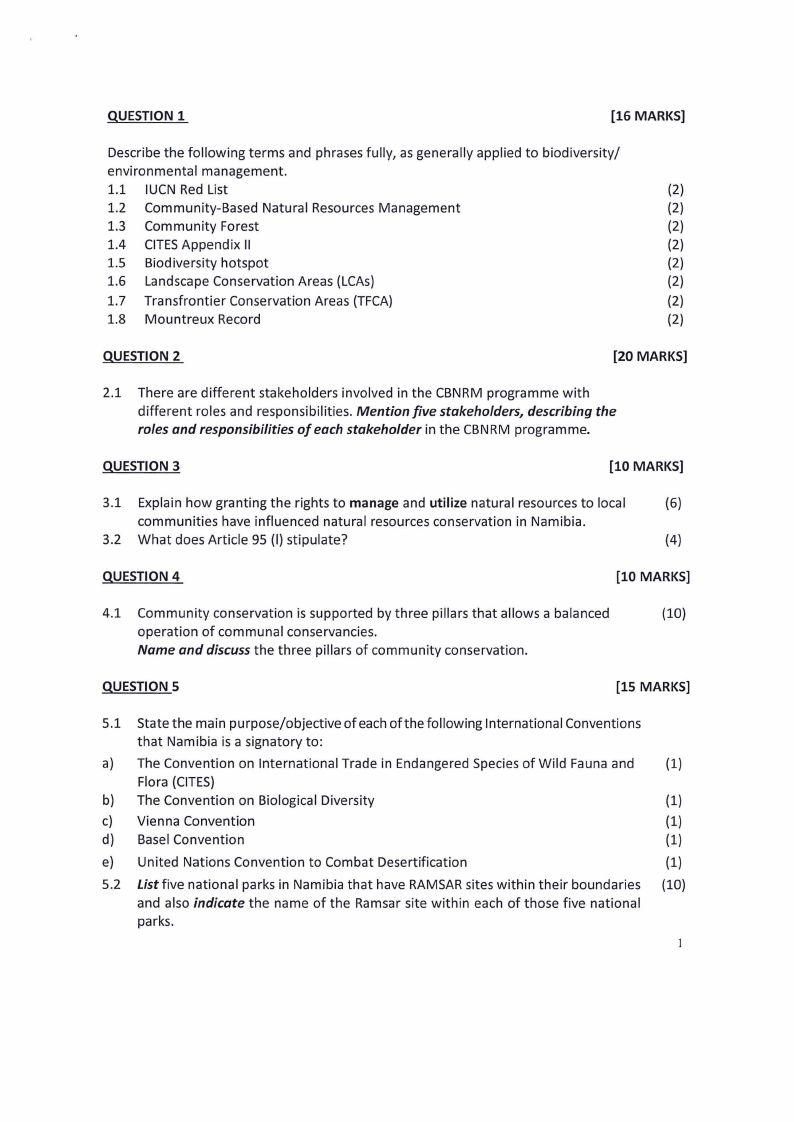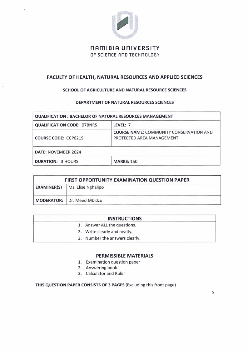 9.3 You have been appointed as a Warden in Bwabwata National Park, and MEFT is