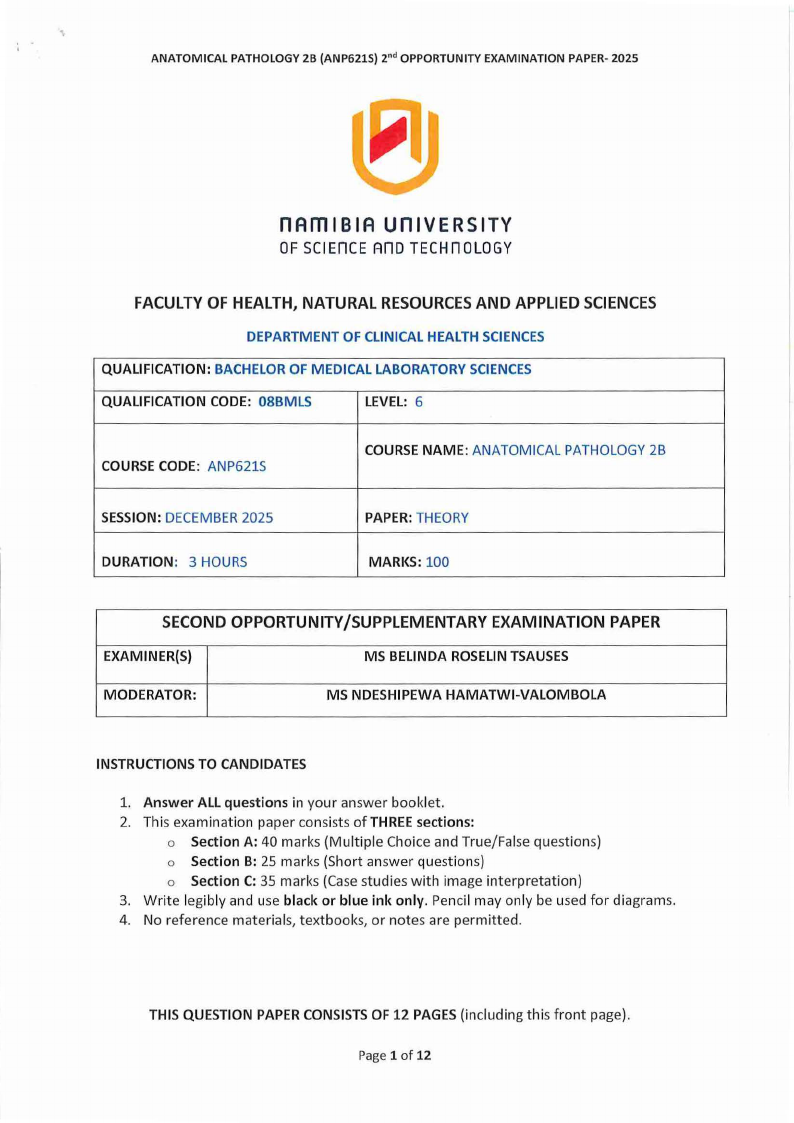 ANP621S - ANATOMICAL PATHOLOGY 2B - 2ND OPP - DEC 2025 |