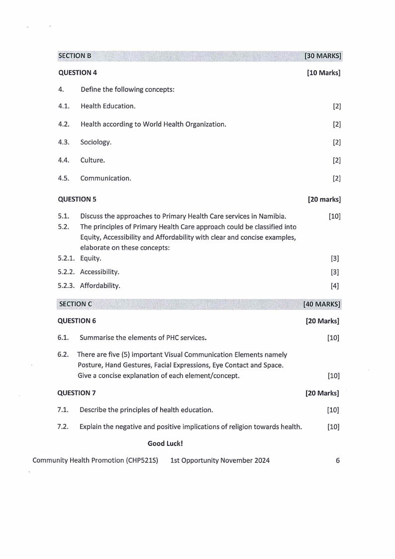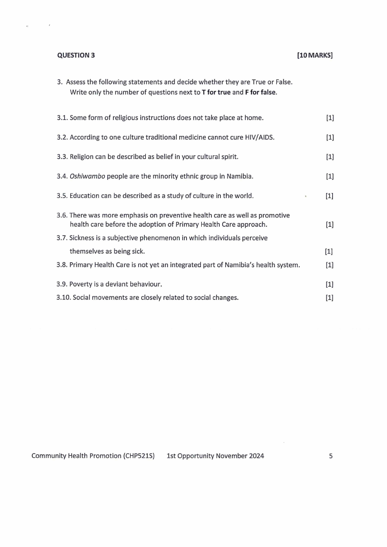 CHP521S - COMMUNITY HEALTH PROMOTION - 1ST OPP - NOVEMBER 2024 |