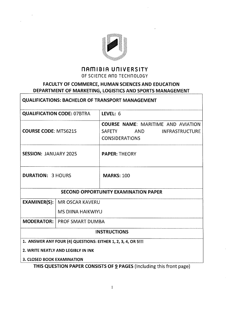 MTS621S - MARITIME AND AVIATION SAFETY AND INFRASTRUCTURE CONSIDERATION - 2ND OPP - JANUARY 2025 |