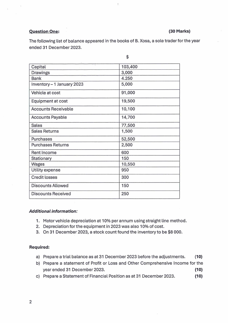 g) Interest at 5% owed to the business from X Bank for the year totals to N$3,500.