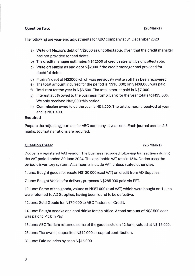 a) Write off Muzira's debt of N$2000 as uncollectable, given that the credit manager