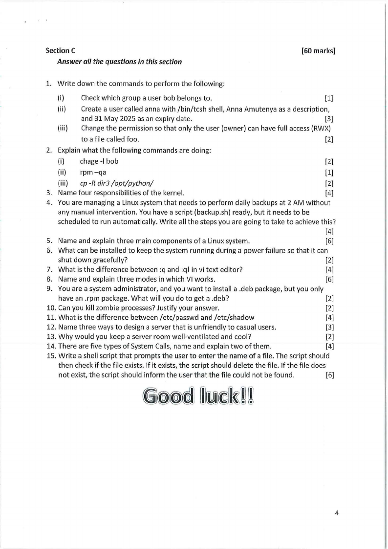 4. You are managing a Linux system that needs to perform daily backups at 2 AM without