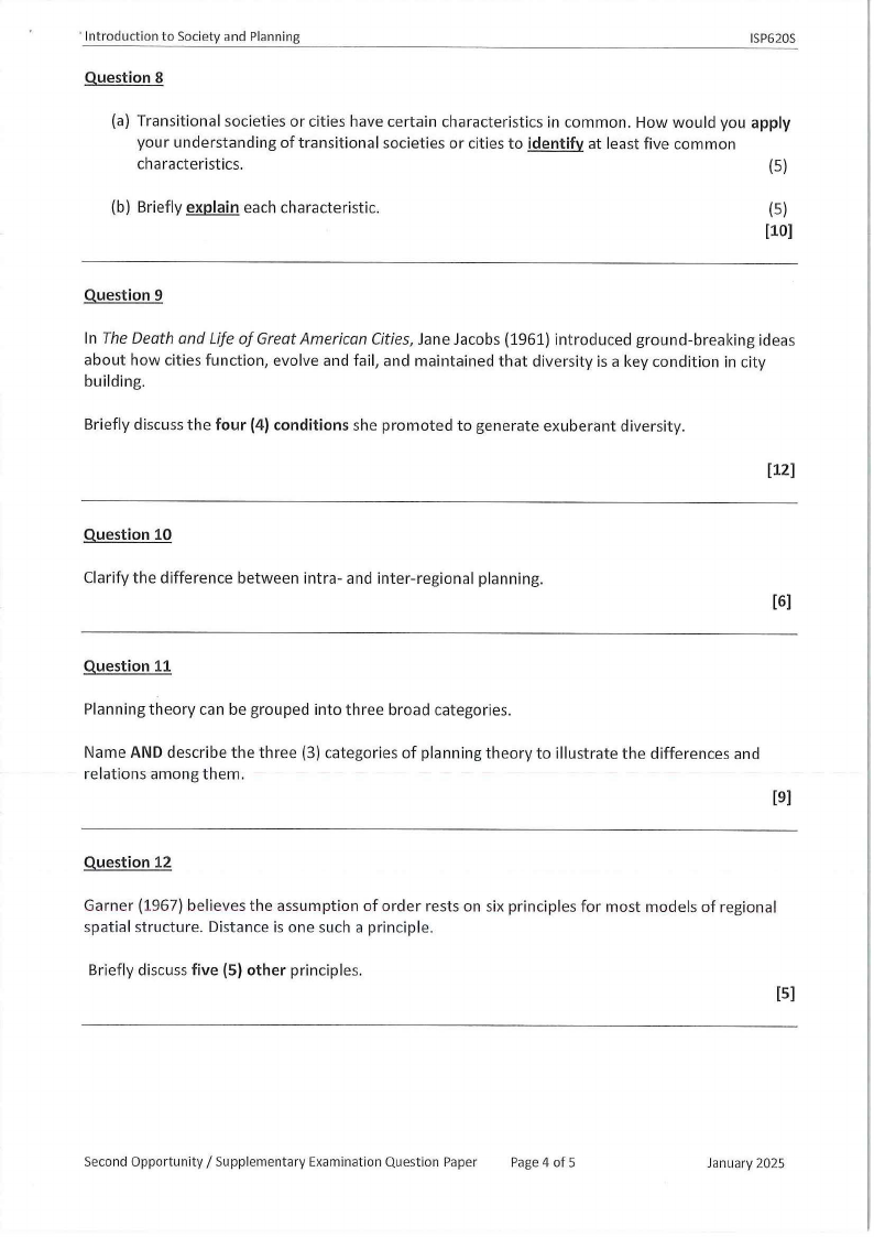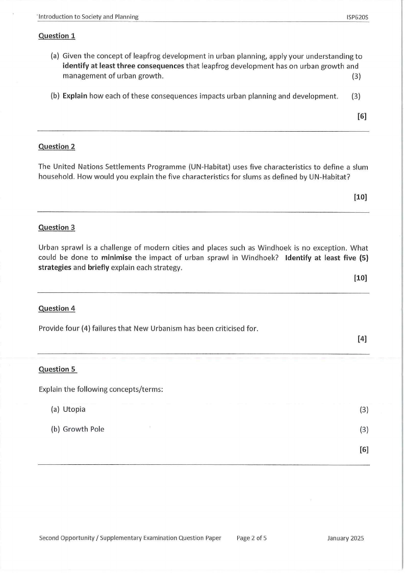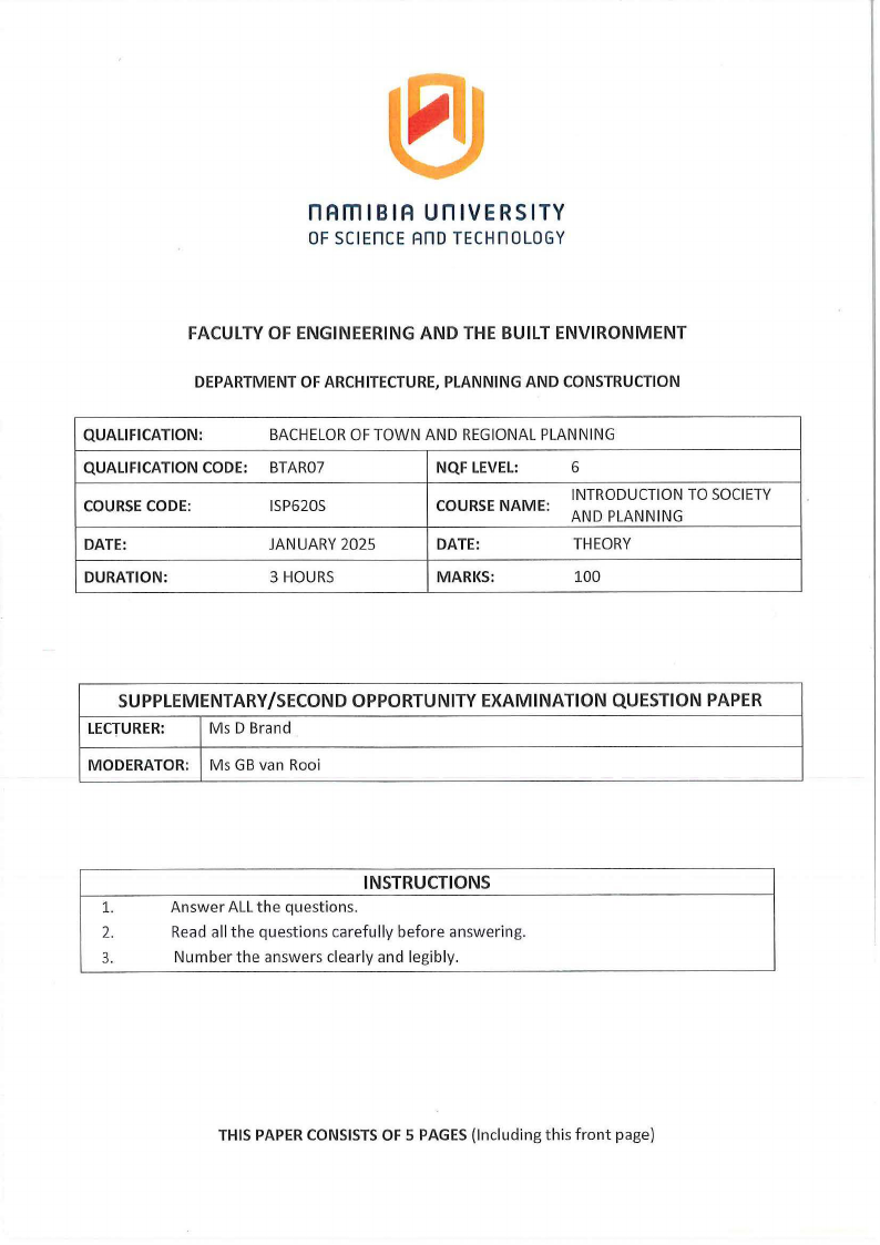 ISP620S - INTRODUCTION TO SOCIETY AND PLANNING - 2ND OPP - JAN 2025 |