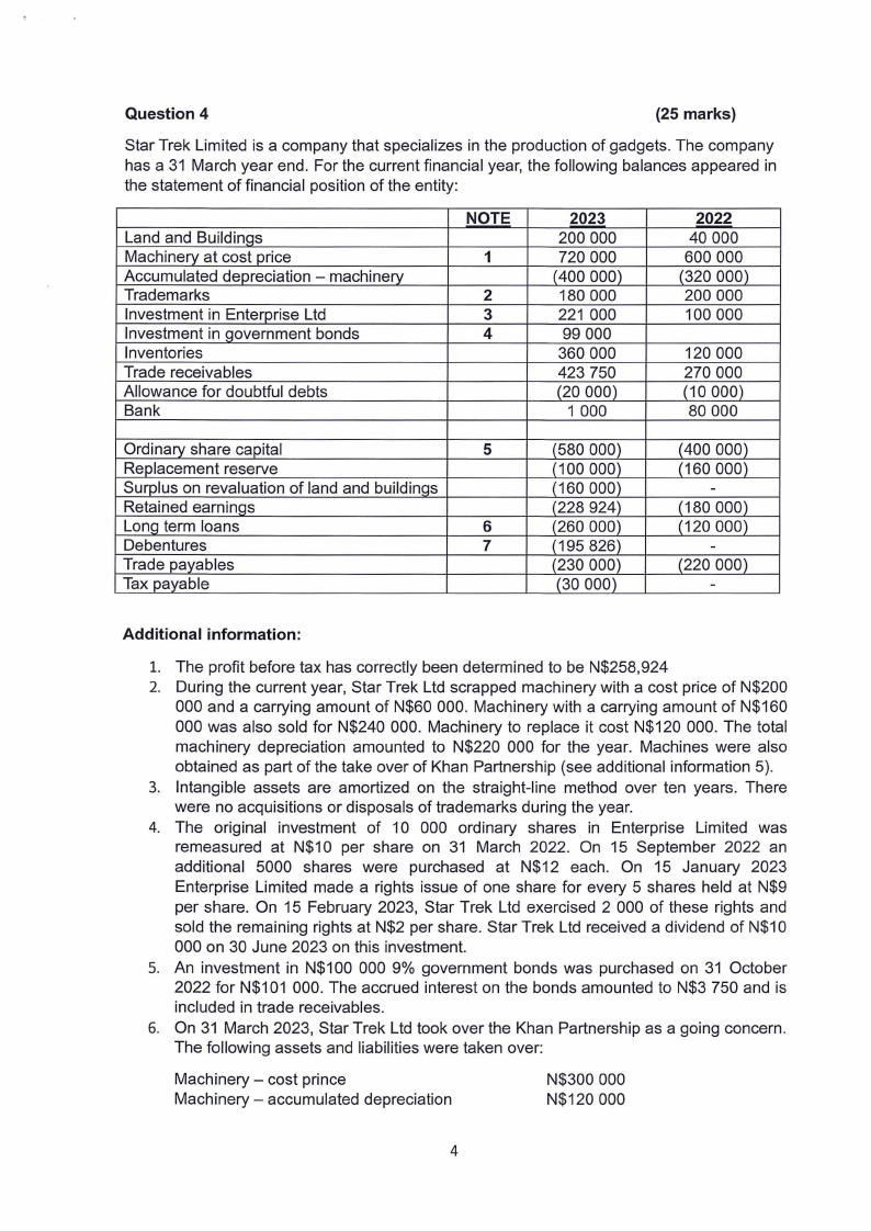 N$ 260. Family Limited had retaining earning of N$ 900 000 on 01 July 2023. The company