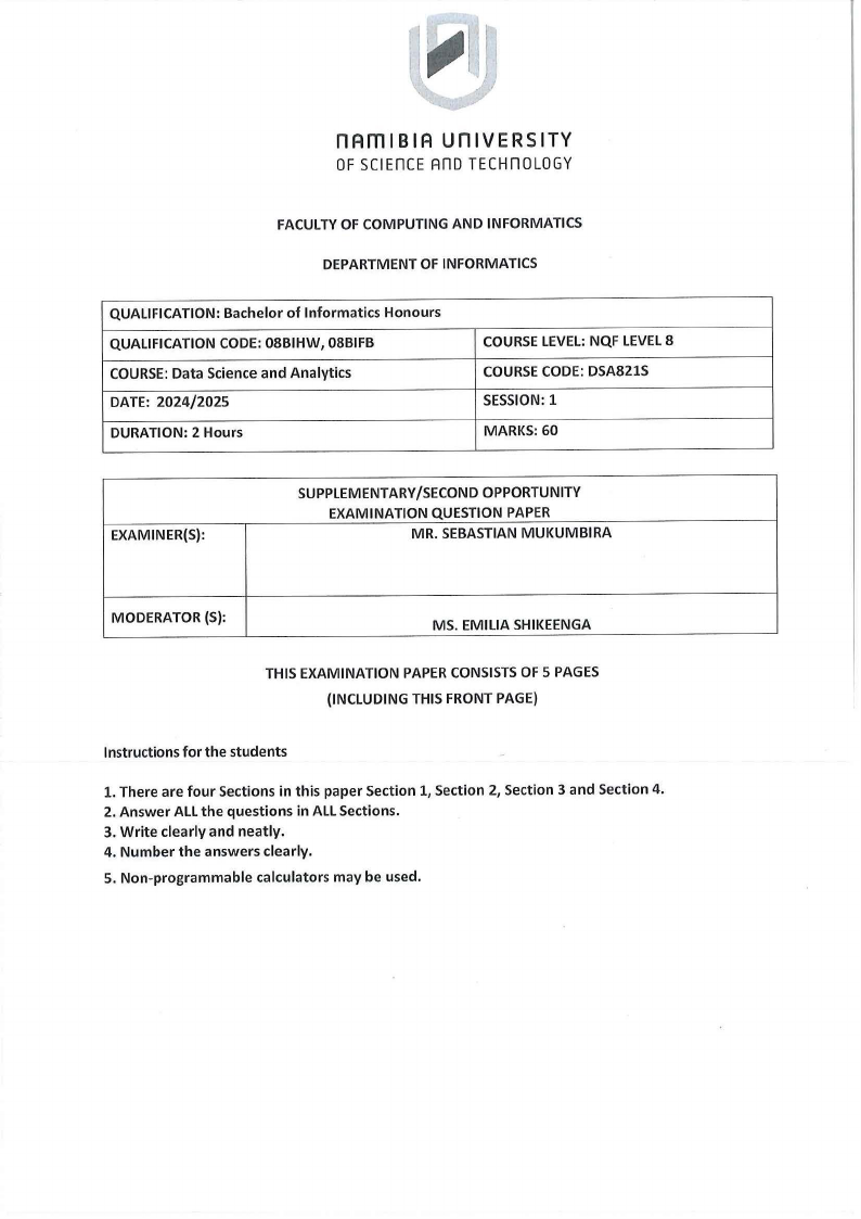 (e) Propose one data cleaning step that could improve the quality of this dataset. (2 marks)