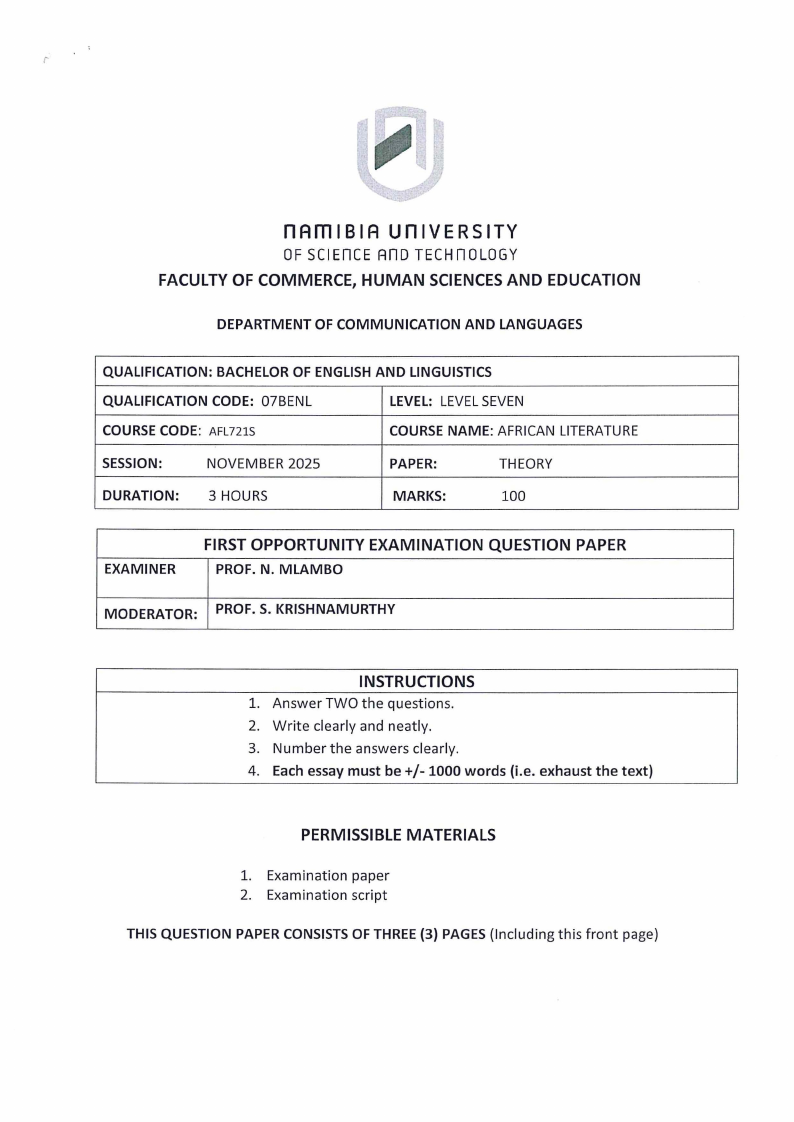 generation" in the novel The Other Presence by S.F. Nyathi. (50 marks)
