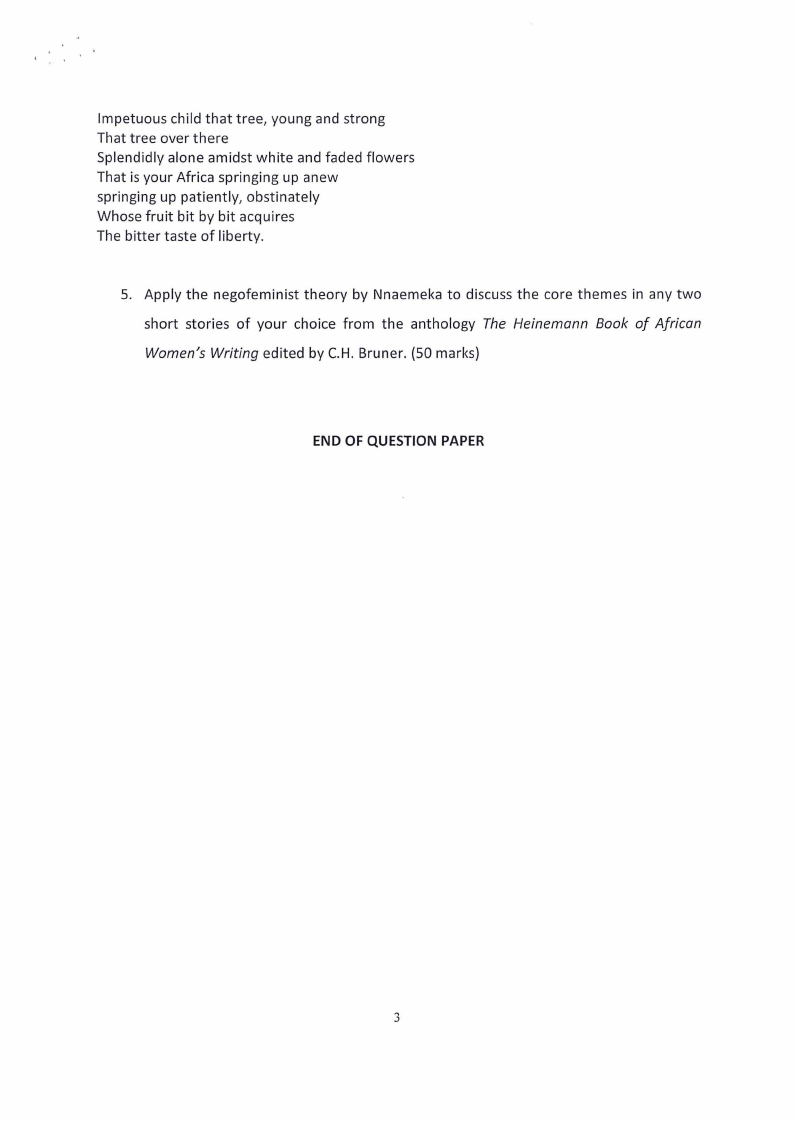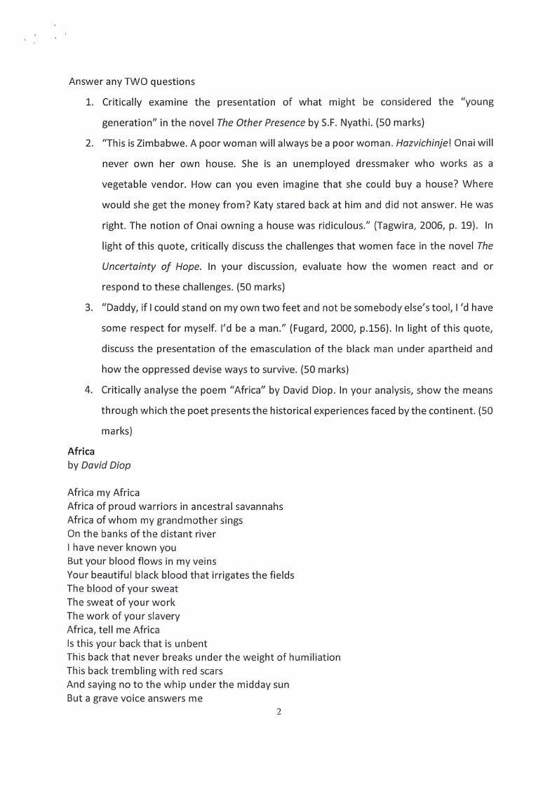 4. Critically analyse the poem "Africa" by David Diop. In your analysis, show the means