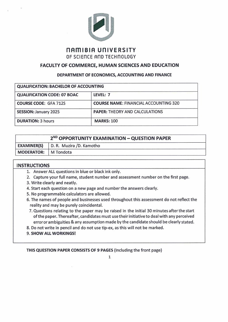 2ND OPPORTUNITY EXAMINATION - QUESTION PAPER