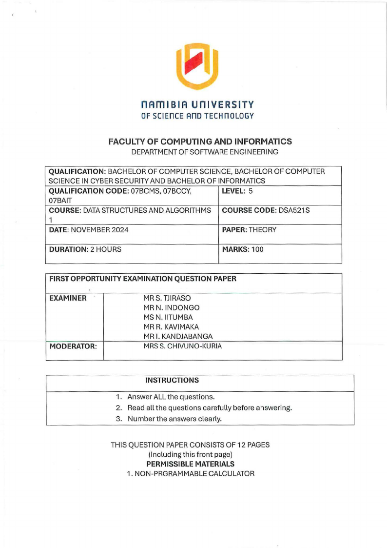 DSA521S - DATA STRUCTURES AND ALGORITHMS - 1ST OPP - NOV 2024 |