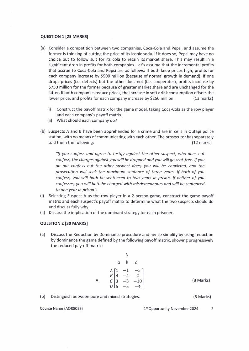 (i) Construct the payoff matrix for the game model, taking Coca-Cola as the row player