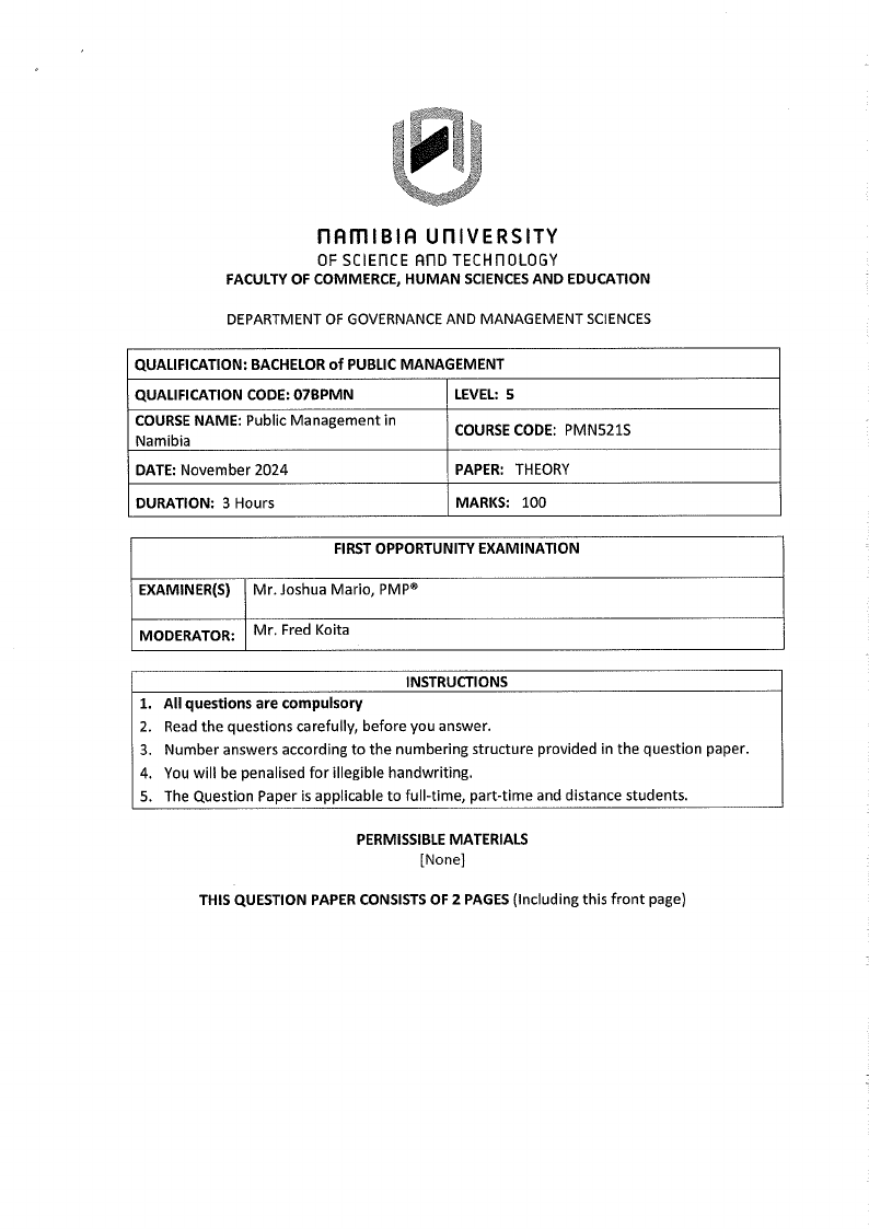 COURSENAME: Public Management in