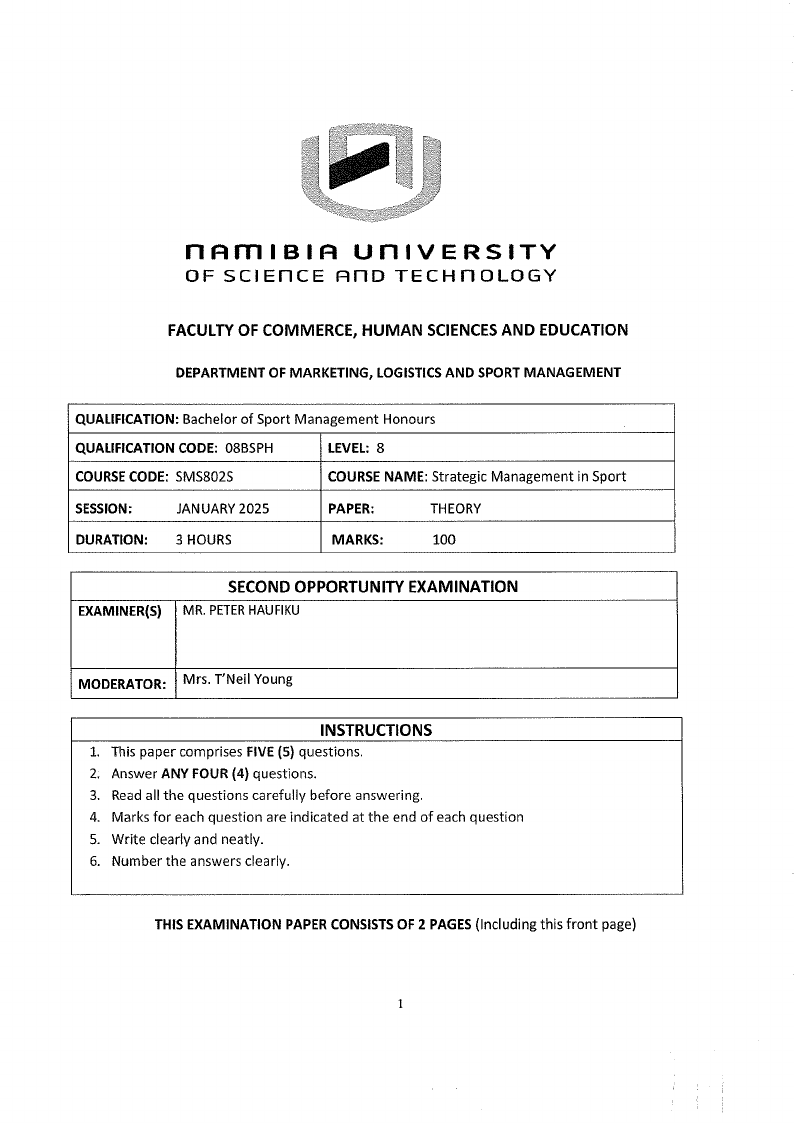 SMS802S - STRATEGIC MANAGEMENT IN SPORT - 2ND OPP - JANUAR 2025