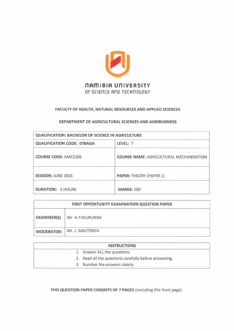 AMC520S - AGRICULTURAL MECHANISATION - 1ST OPP - JUNE 2025 |