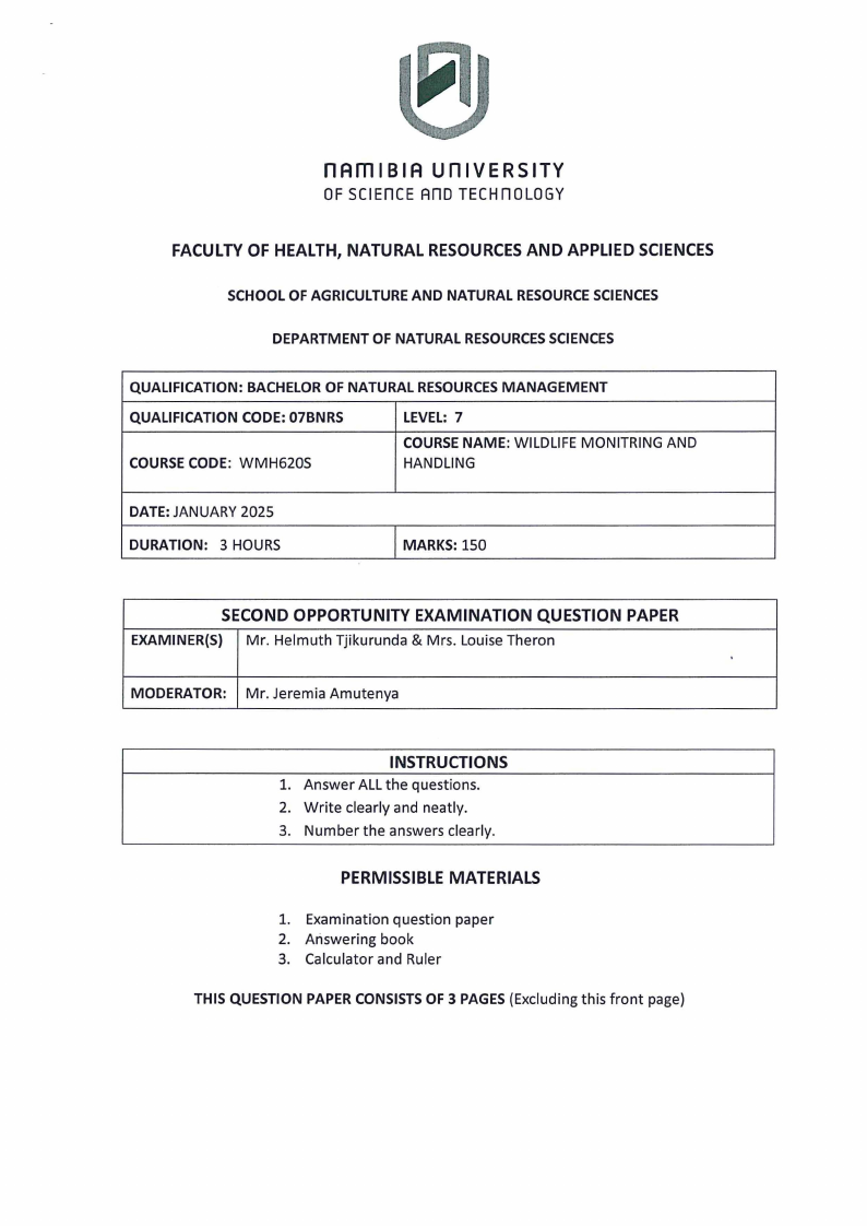 5.2 You have been appointed as the head of a Game Capture Unit within the Ministry of (4)