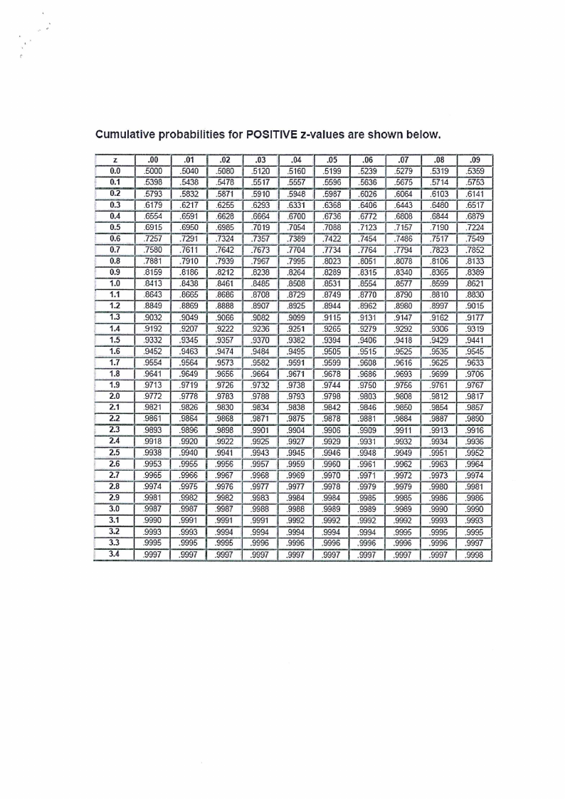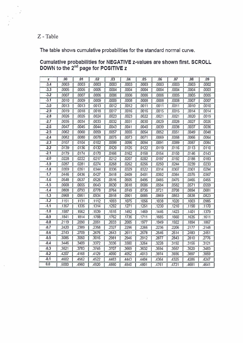 Cumulative probabilities for NEGATIVEz-values are shown first. SCROLL