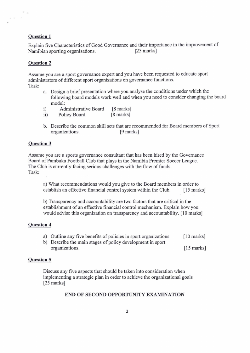 END OF SECOND OPPORTUNITY EXAMINATION