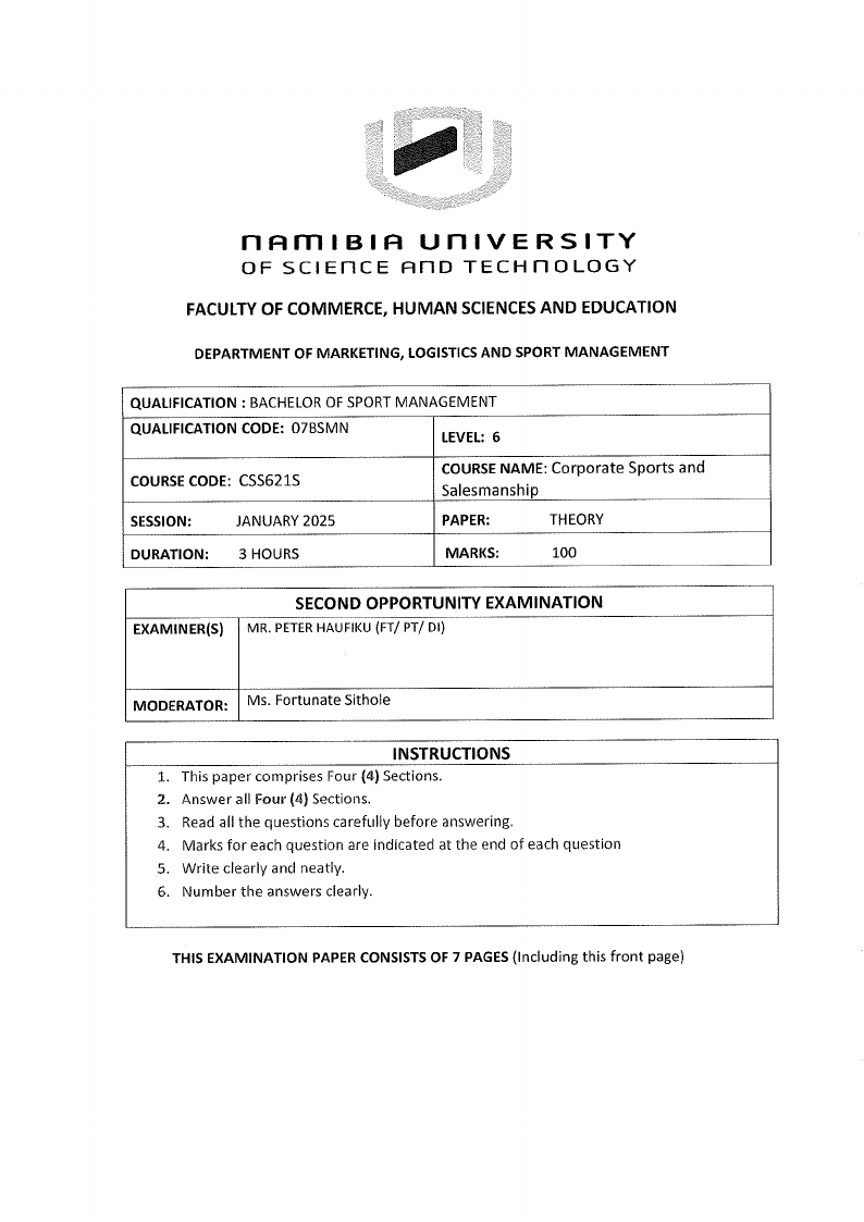 CSS621S - CORPORATE SPORTS AND SALESMANSHIP- 2ND OPP - JANUARY 2025