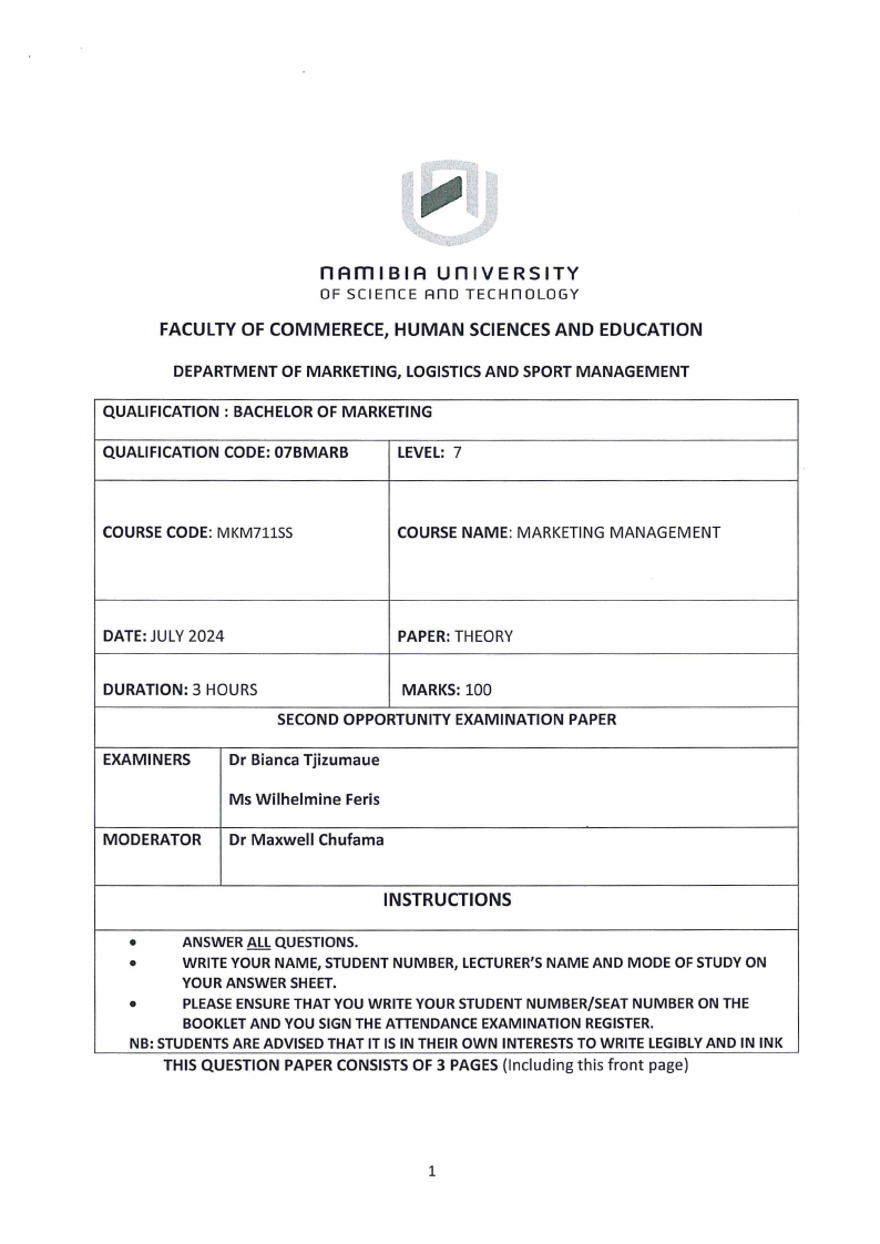 a) Discussany four (4) objectives of Marketing Management.