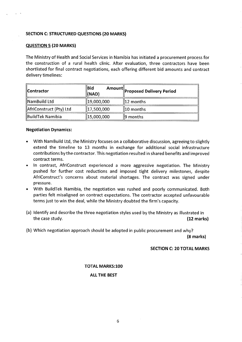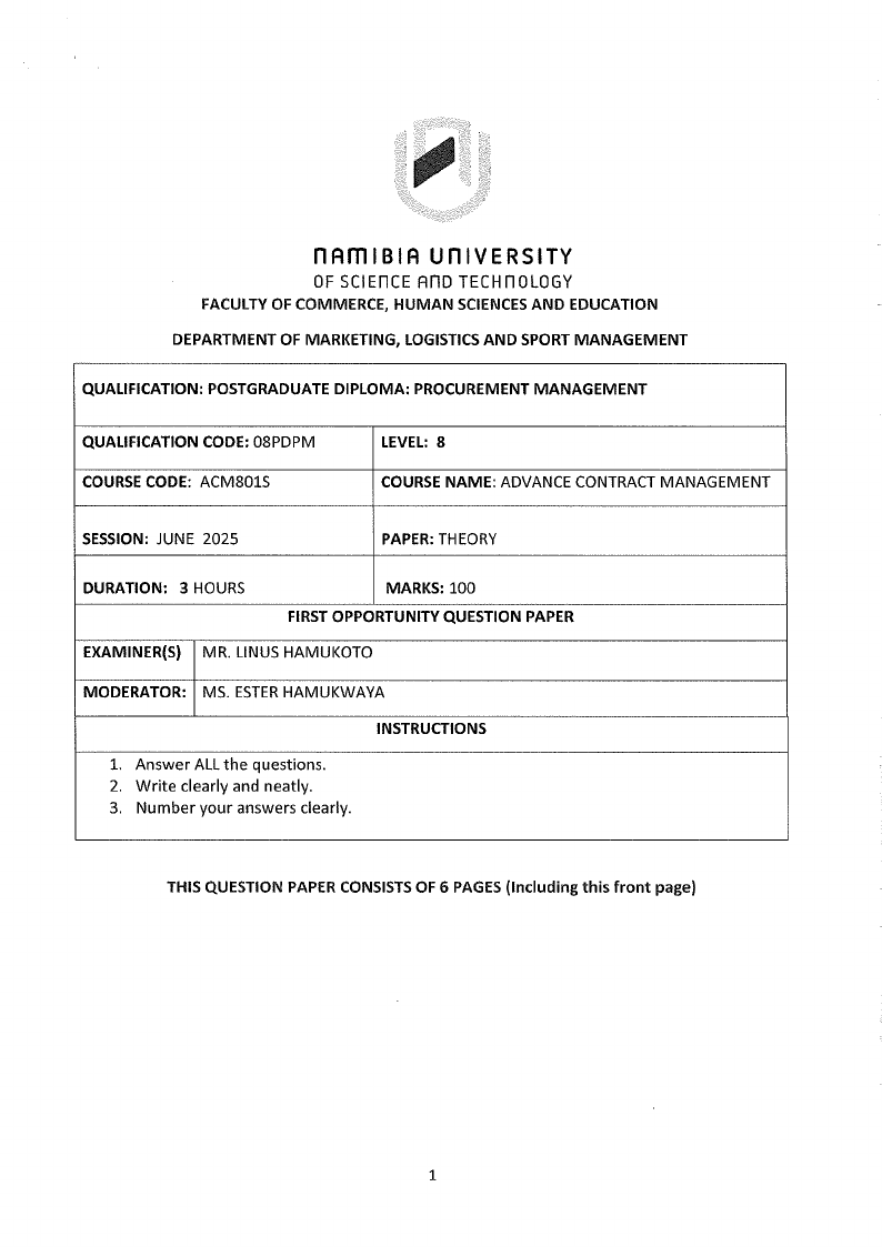 2.3 Your facilities department has entered a contract valued at N$150,000 annually for the