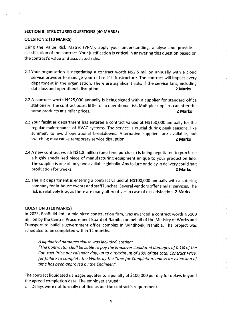 2.1 Your organisation is negotiating a contract worth N$2.5 million annually with a cloud
