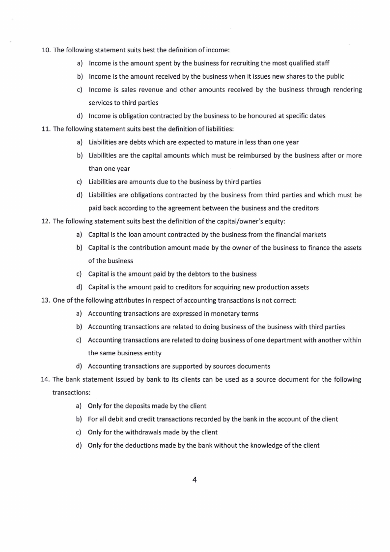 b) Liabilities are the capital amounts which must be reimbursed by the business after or more