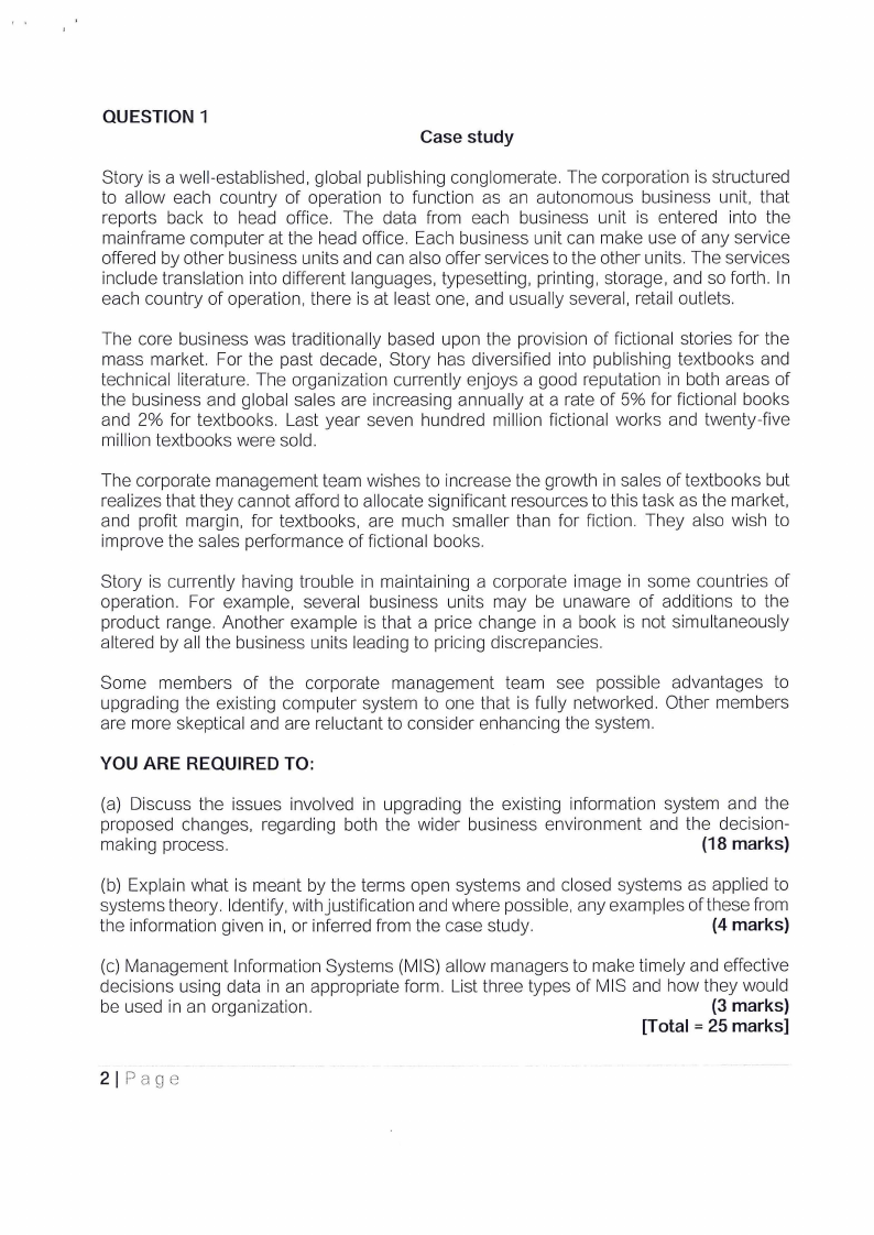 the information given in, or inferred from the case study.
