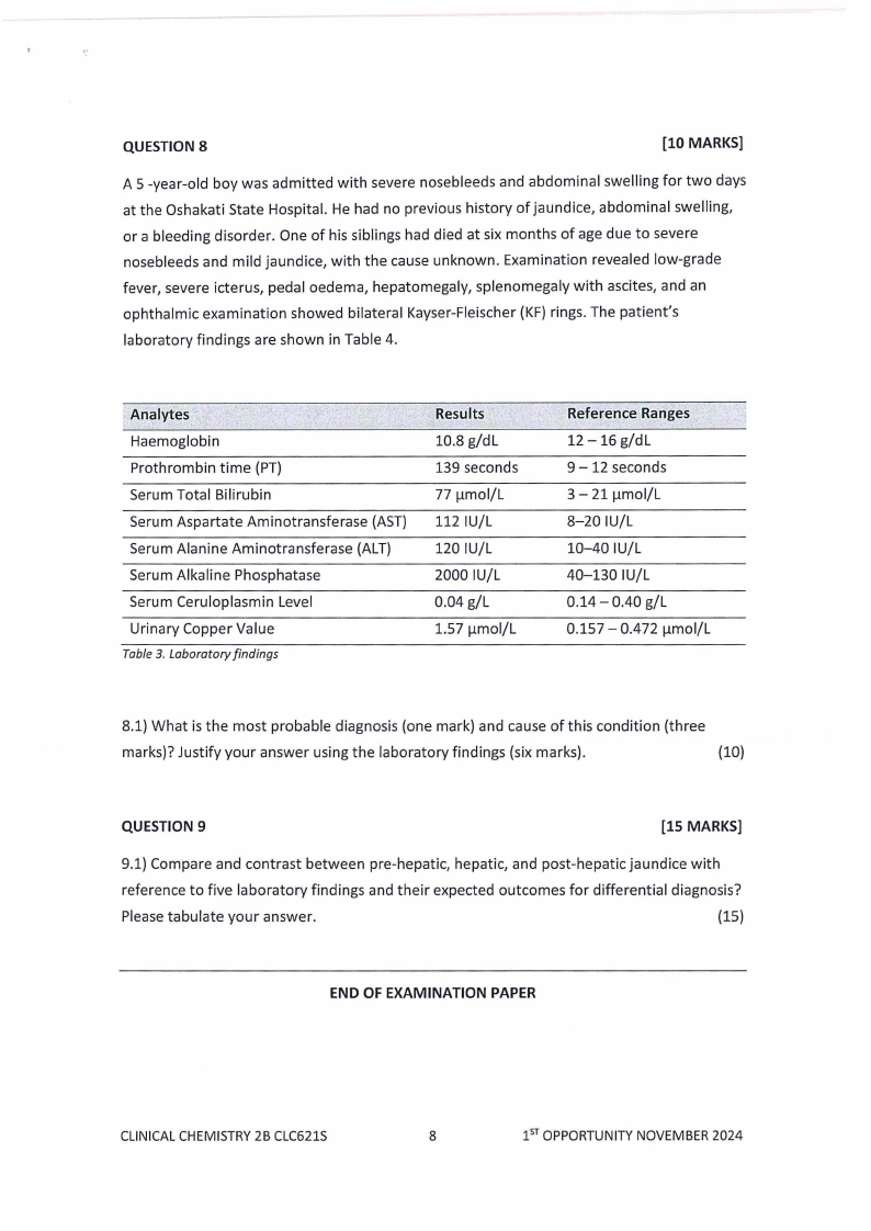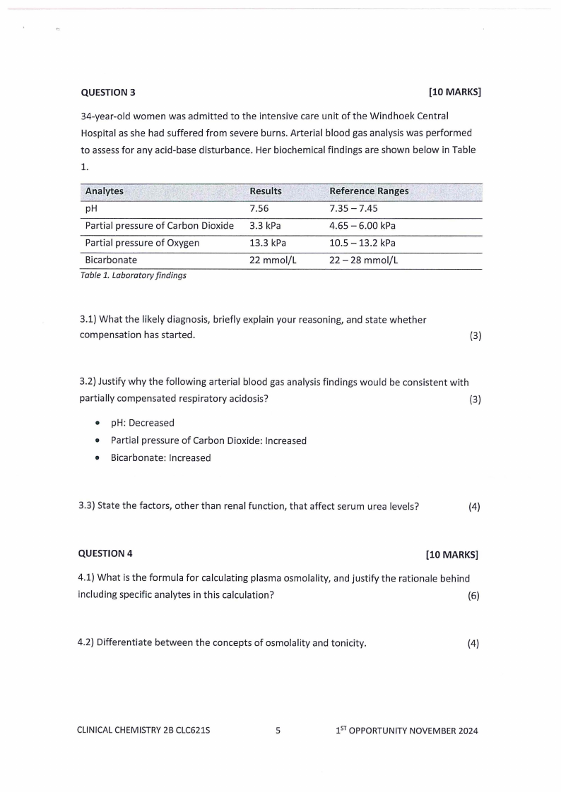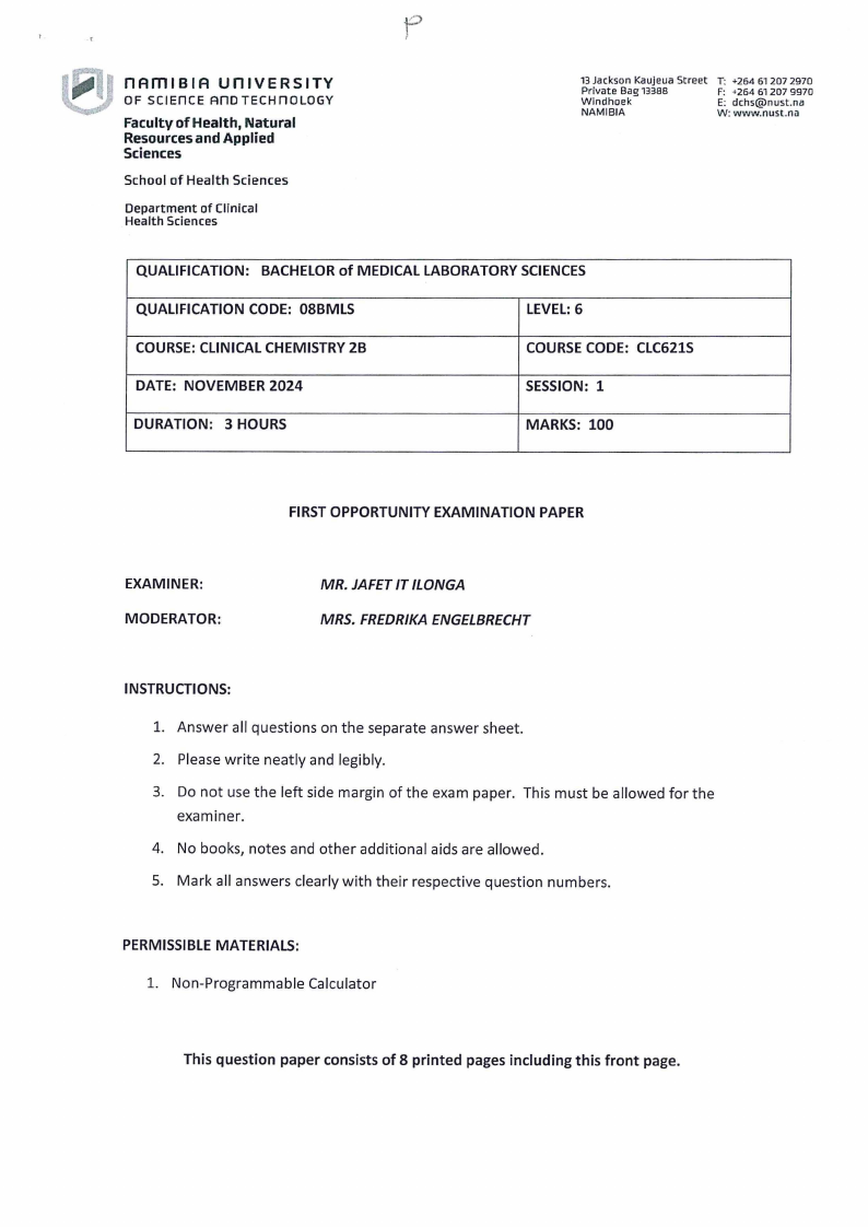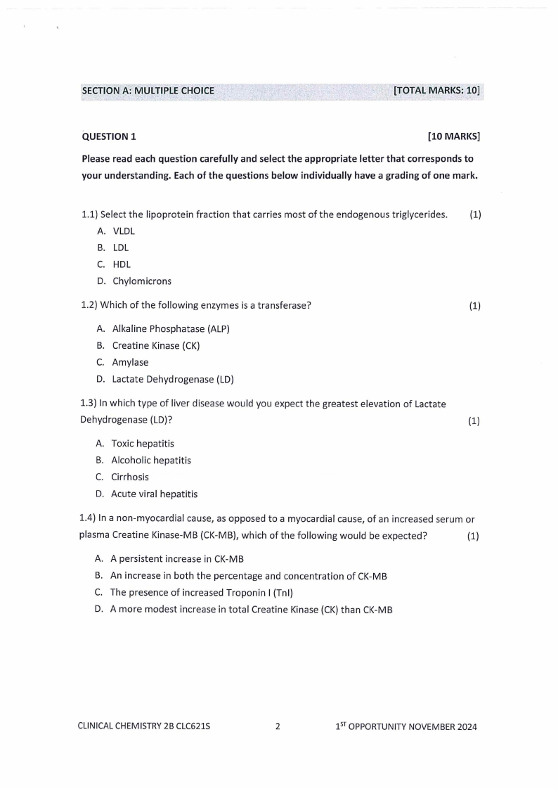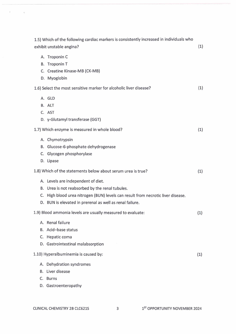 CLC621S - CLINICAL CHEMISTRY 2B - 1ST OPP - NOVEMBER 2024 |