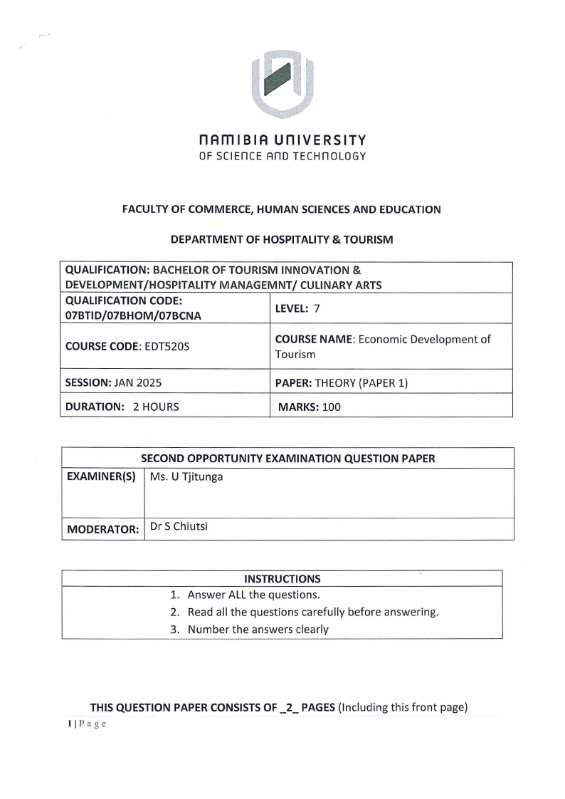 SECOND OPPORTUNITY EXAMINATION QUESTION PAPER