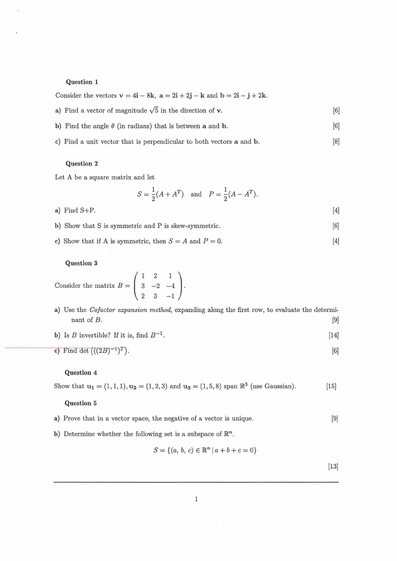 Show that u 1 = (1, 1, 1), u 2 = (1, 2, 3) and u3 = (1, 5, 8) span JR3 (use Gaussian).