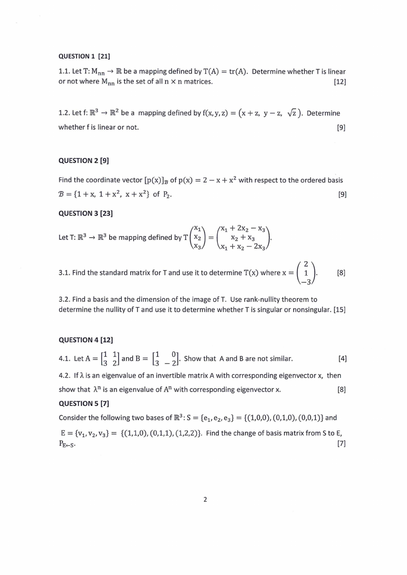= 1.1. Let T: Mnn IR be a mapping defined by T(A) tr(A). Determine whether Tis linear