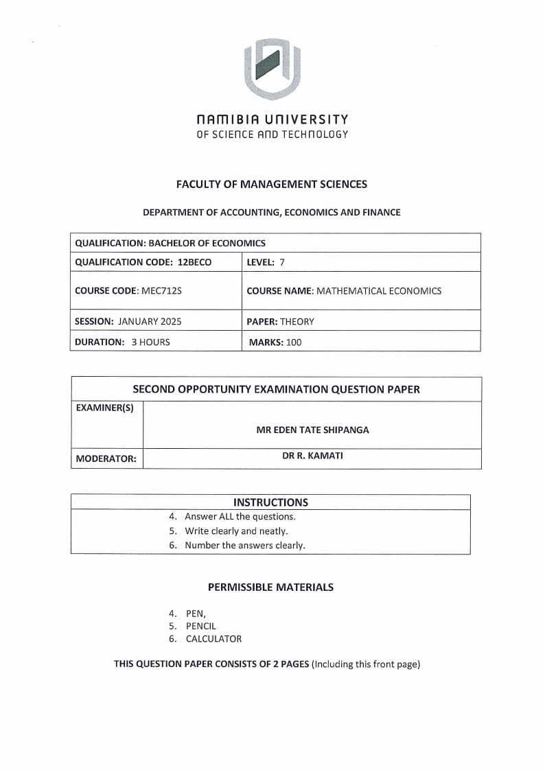 ii. Optimise the following function, a) find the critical value for the first order condition and b) the high-order