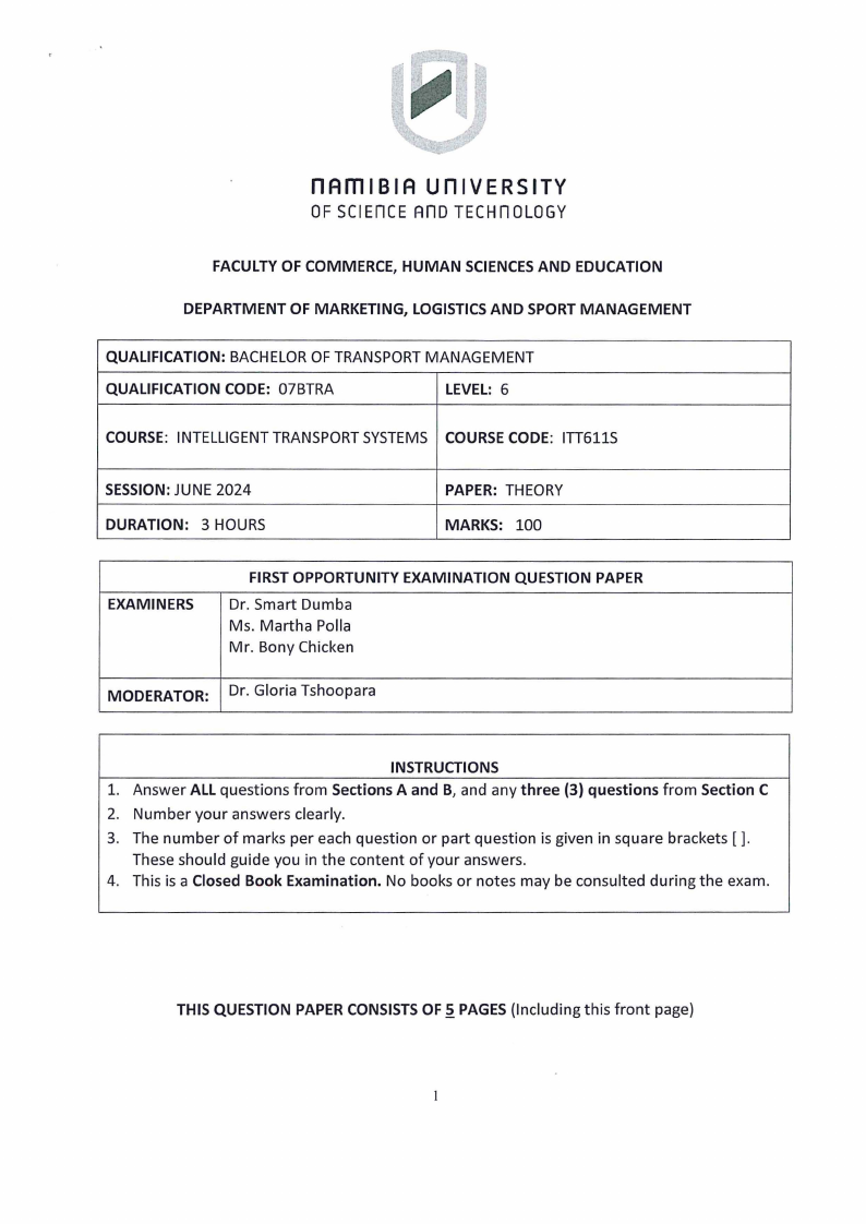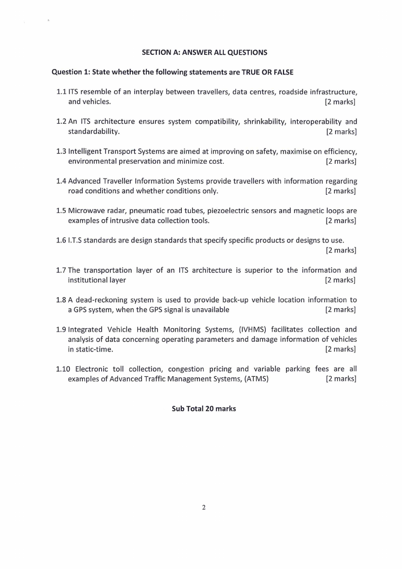 1.3 Intelligent Transport Systems are aimed at improving on safety, maximise on efficiency,