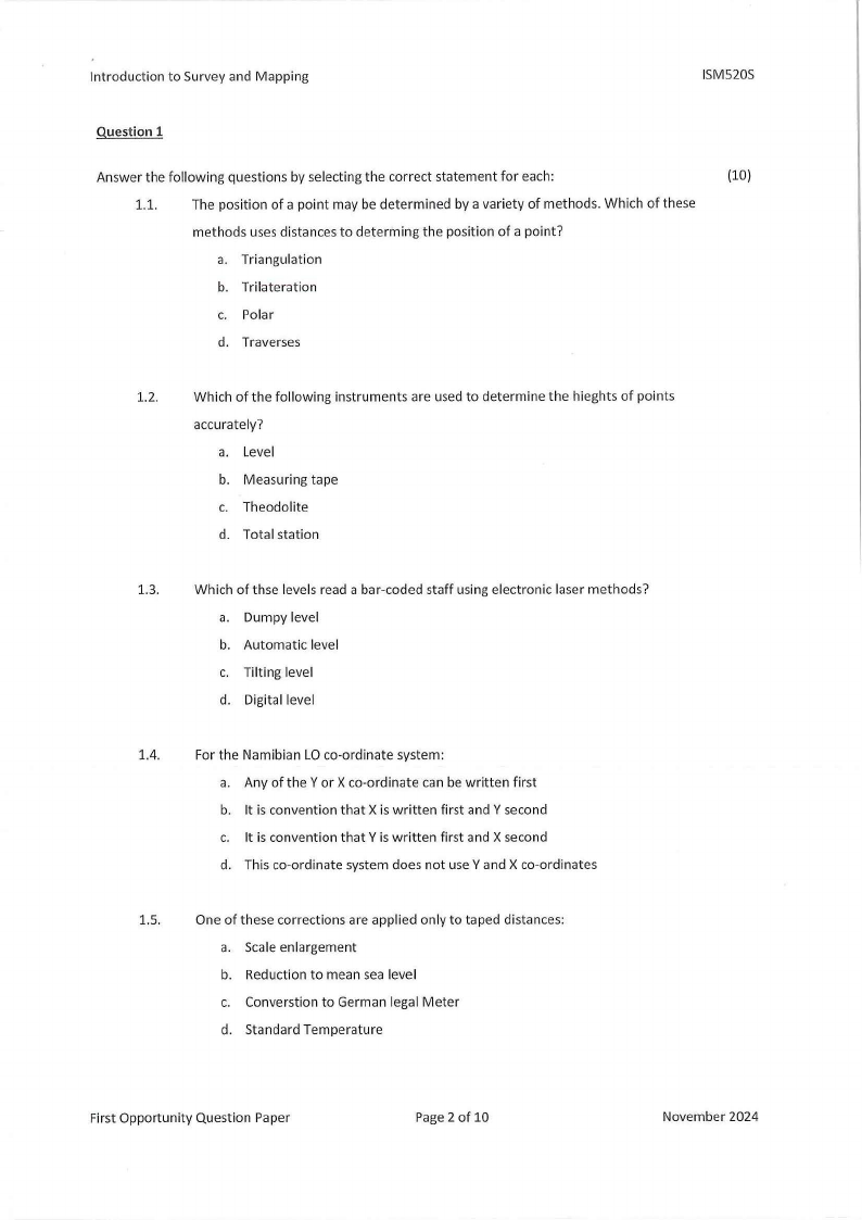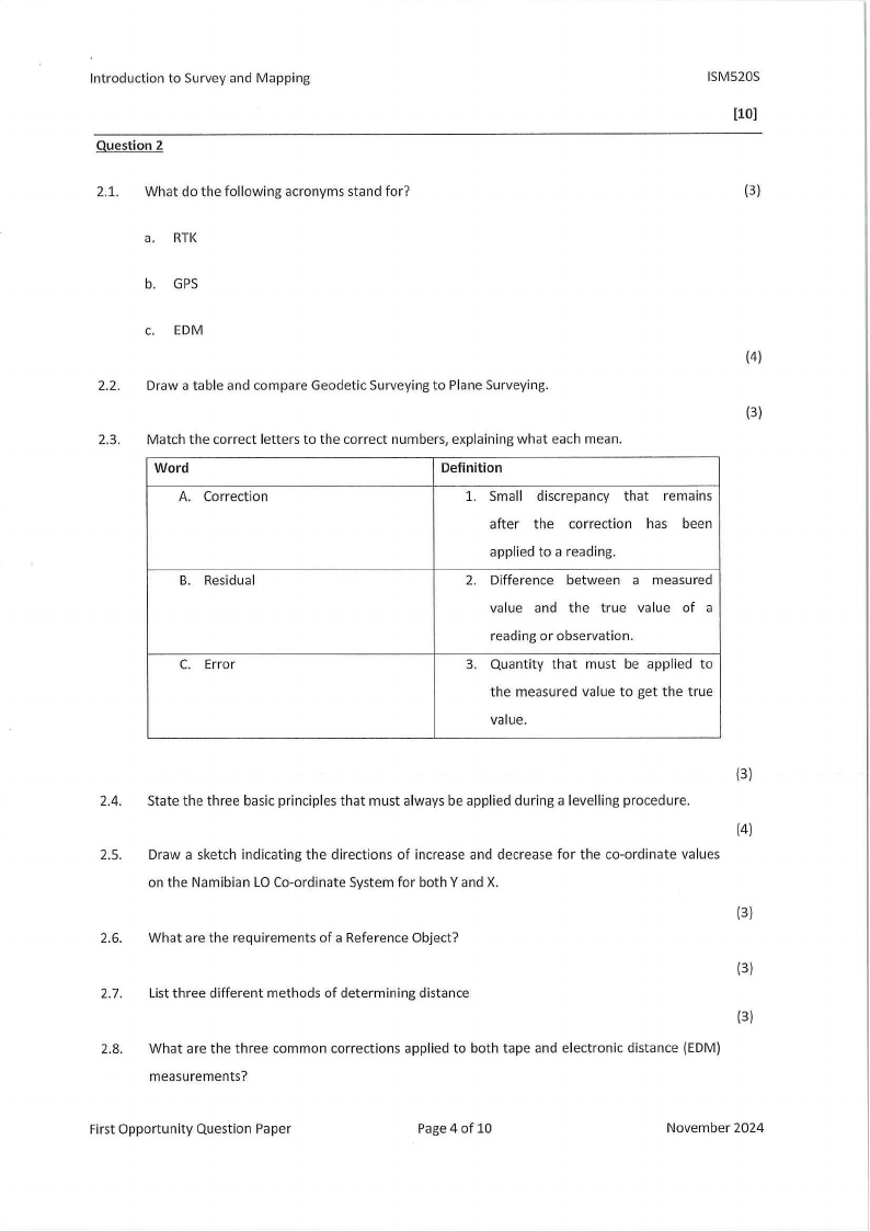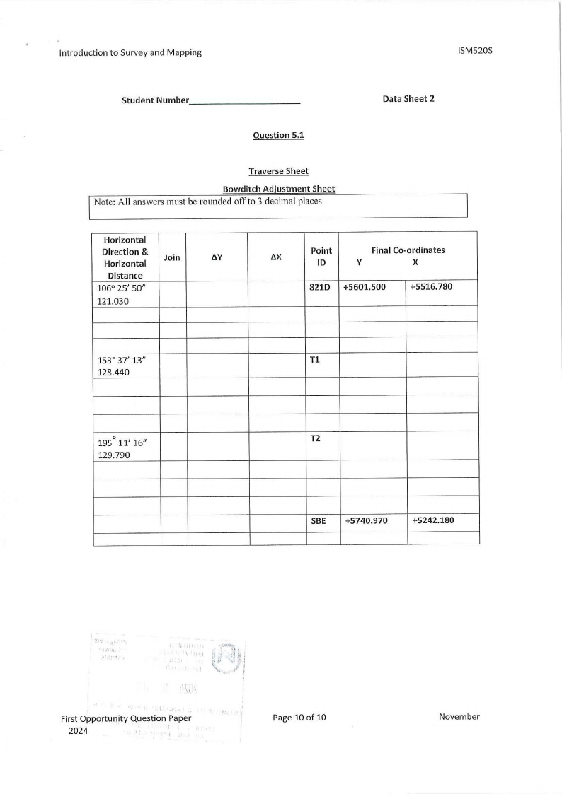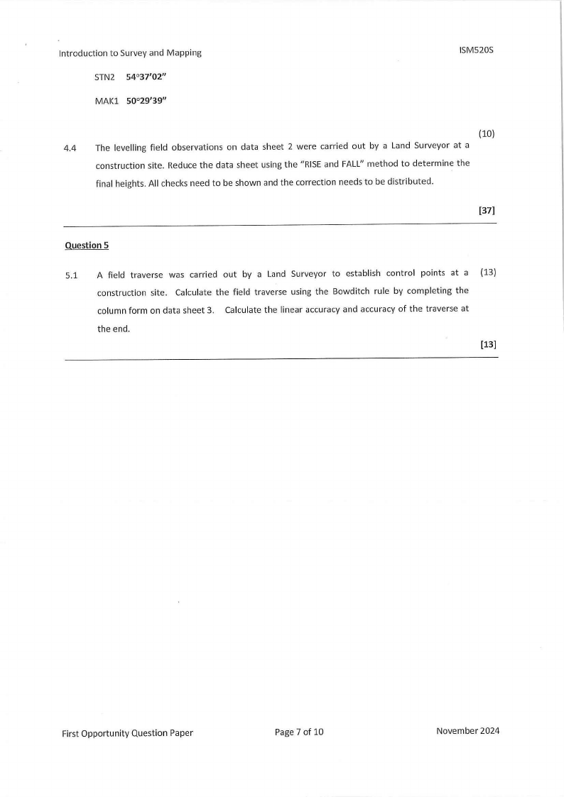 ISM520S - INTRODUCTION TO SURVEY MAPPING - 1ST OPP - NOV 2024 |
