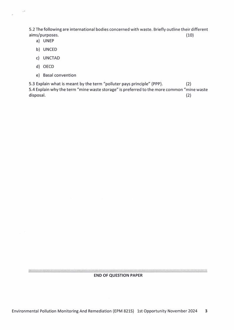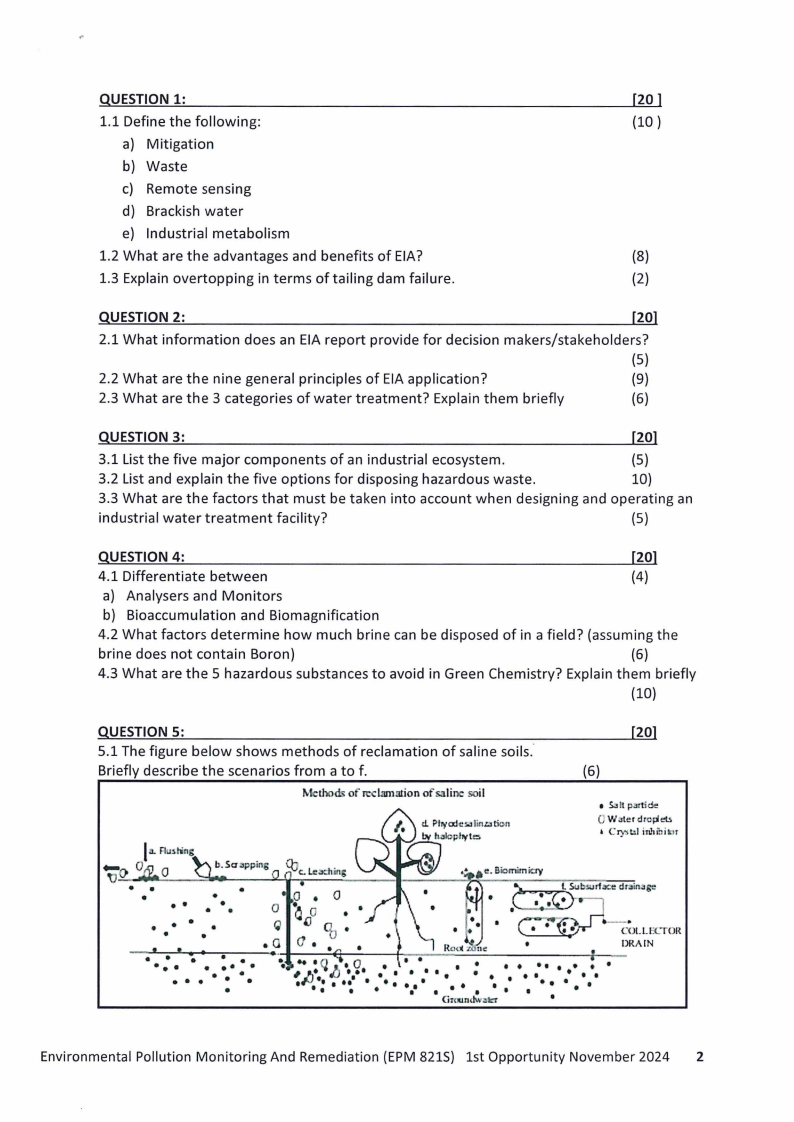 Environmental Pollution Monitoring And Remediation (EPM 821S) 1st Opportunity November 2024 2